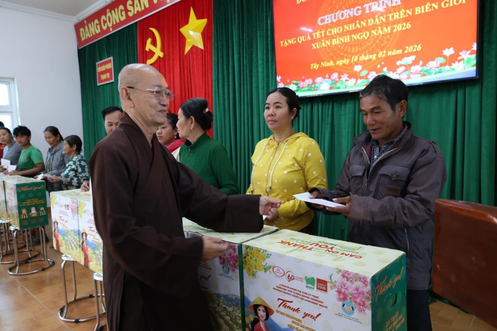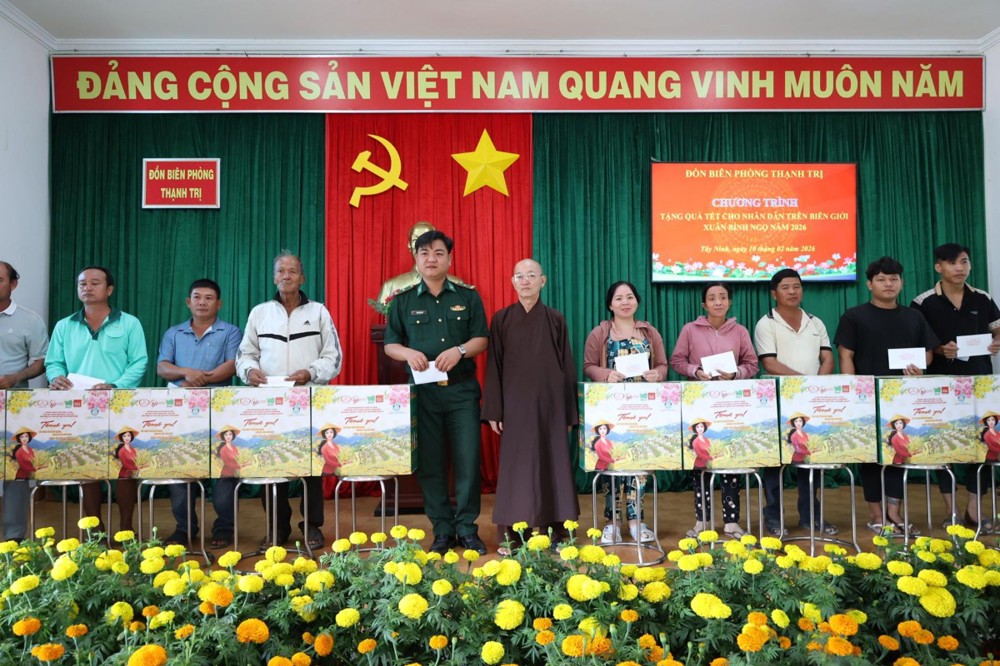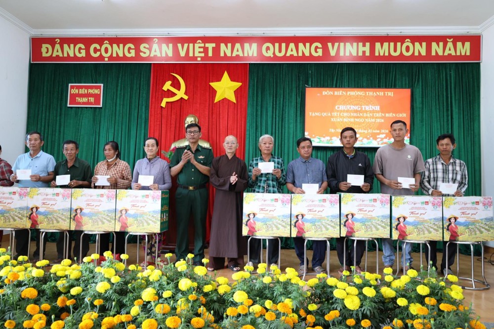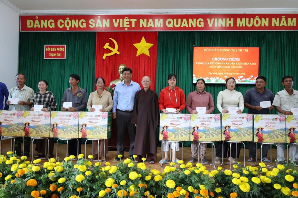 Ngày 10/02/2026, Ban Trị sự Giáo hội Phật giáo Việt Nam tỉnh Tây Ninh phối hợp Đồn Biên phòng Thạnh Trị và UBMTTQ Việt Nam xã Bình Hiệp, tỉnh Tây Ninh tổ chức trao quà tết cho người dân biên giới nhân dịp Tết Nguyên đán Bính Ngọ năm 2026.