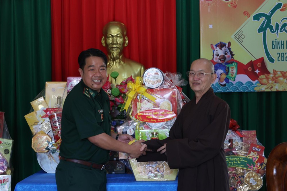 Thay mặt BTS GHPGVN tỉnh Tây Ninh, Thượng tọa Thích Quảng Tâm nhắc lại tinh thần Phật giáo Việt Nam luôn đồng hành cùng dân tộc Việt Nam theo đúng phương châm “Đạo pháp – Dân tộc – Xã hội Chủ nghĩa”, nhiều năm qua, Phật giáo tỉnh nhà đã đồng hành cùng Lực lượng vũ trang tỉnh trong nhiều công tác, nhất là an sinh xã hội. Thượng tọa kính tri ân TT. Thích Thanh Phong – Phó Chủ tịch HĐTS, Trưởng ban Kinh tế Tài chính TW, Trụ trì chùa Vĩnh Nghiêm và bà Mai Thị Hạnh – Phu nhân Nguyên Chủ tịch nước Trương Tấn Sang và nhóm Chia sẻ-Sharing đã đồng hành cùng buổi phát quà hôm nay.