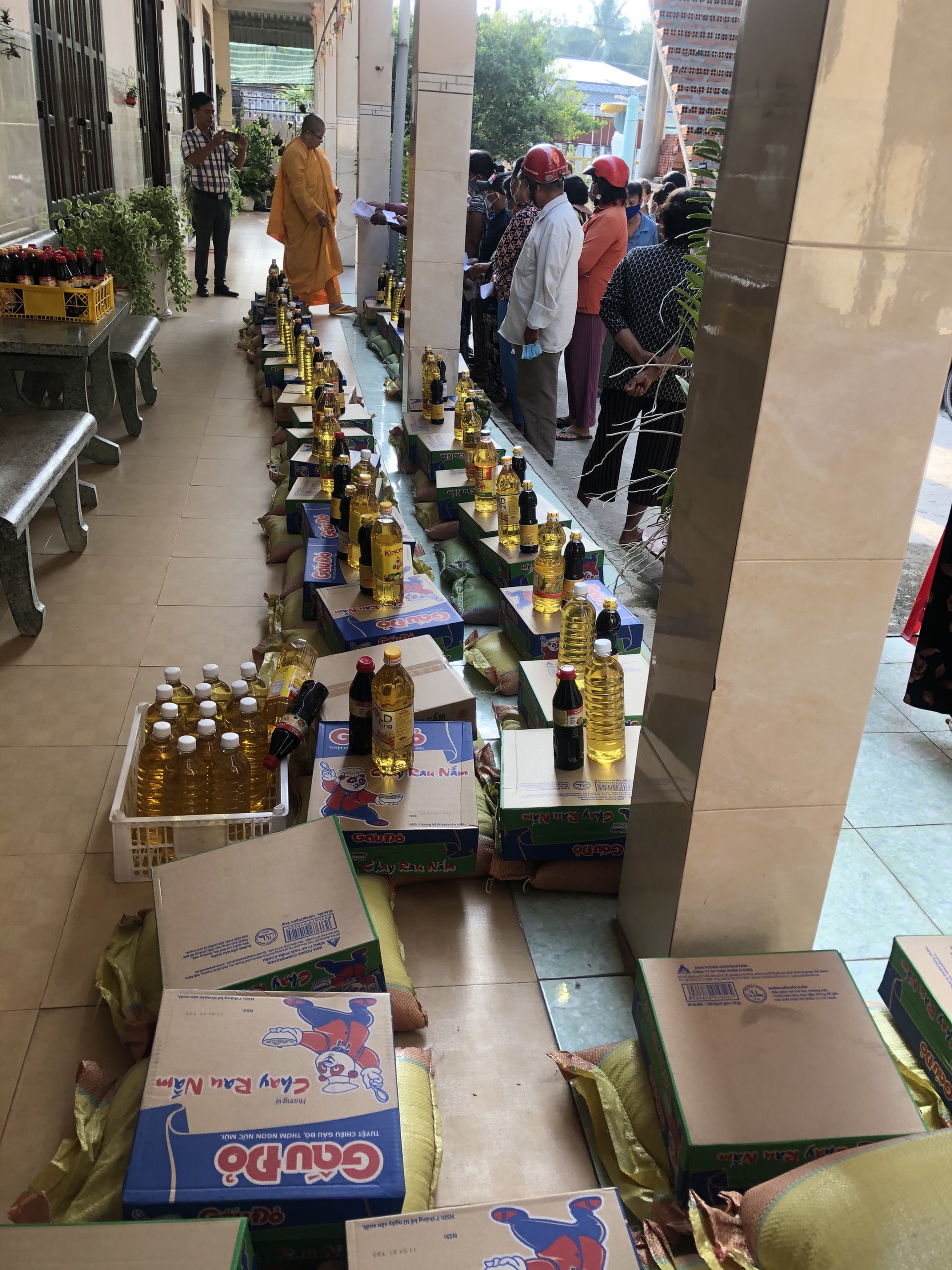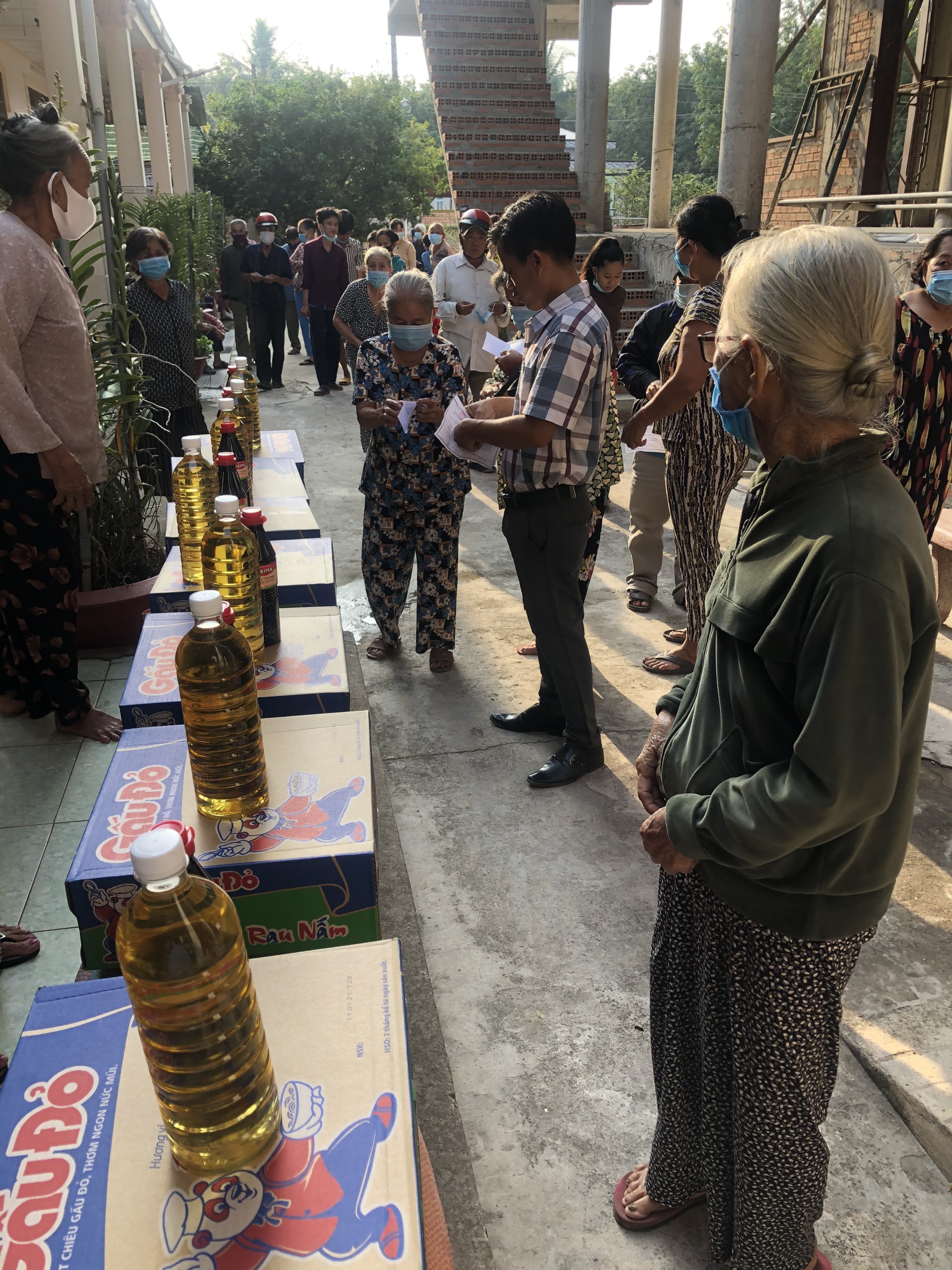 Mỗi phần quà bà con nhận được lần này bao gồm: gạo, mì, như yếu phầm mùa Tết.... Tổng trị giá chung là 37.500.000đ.