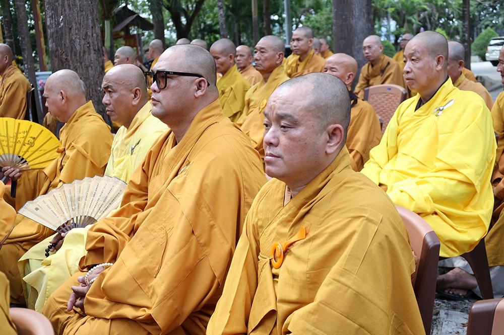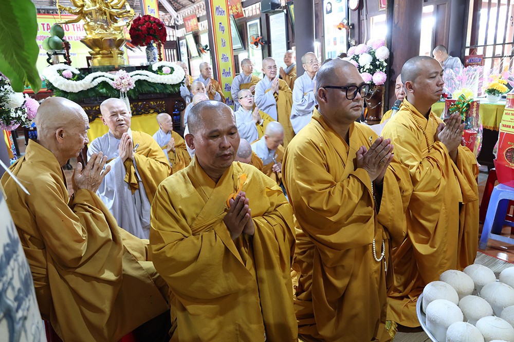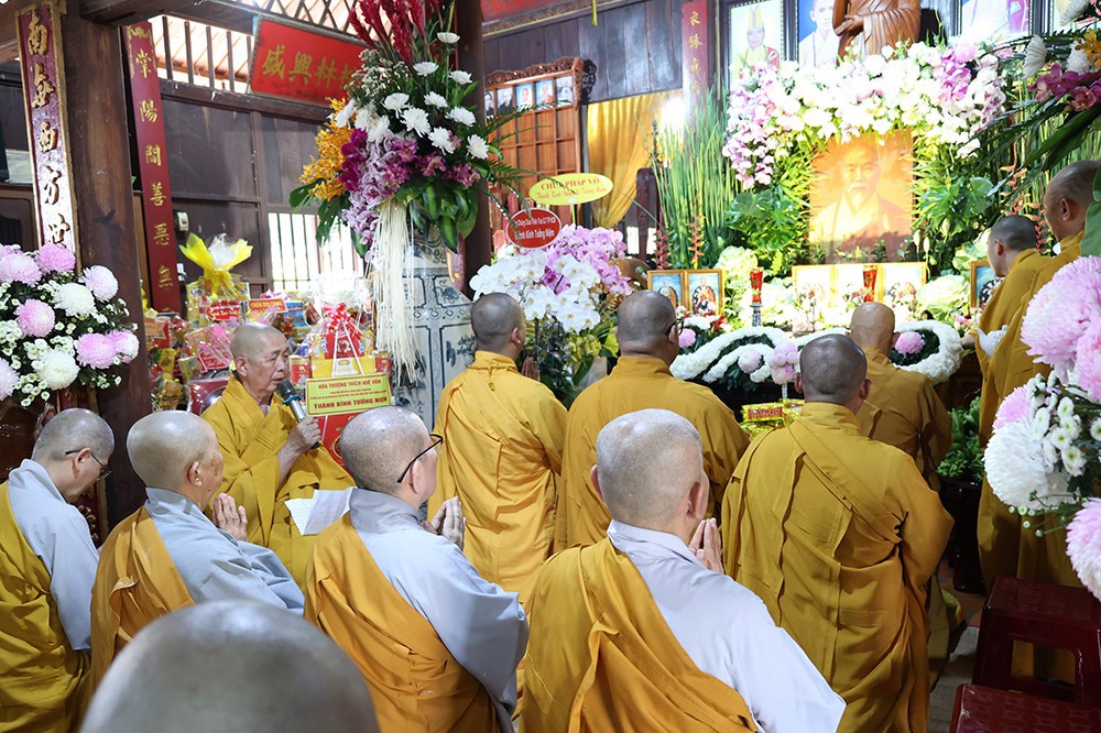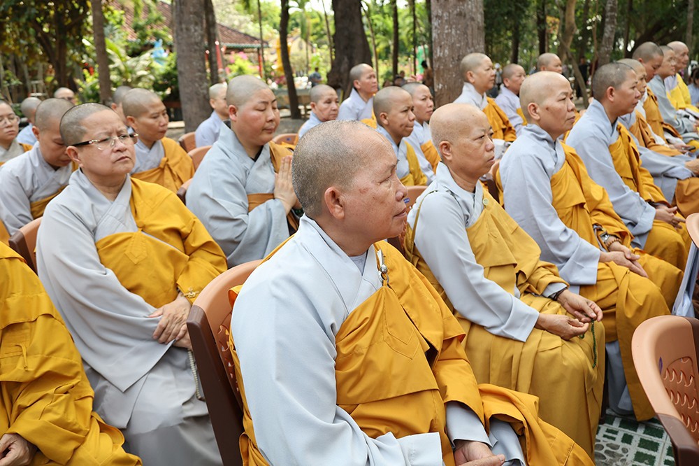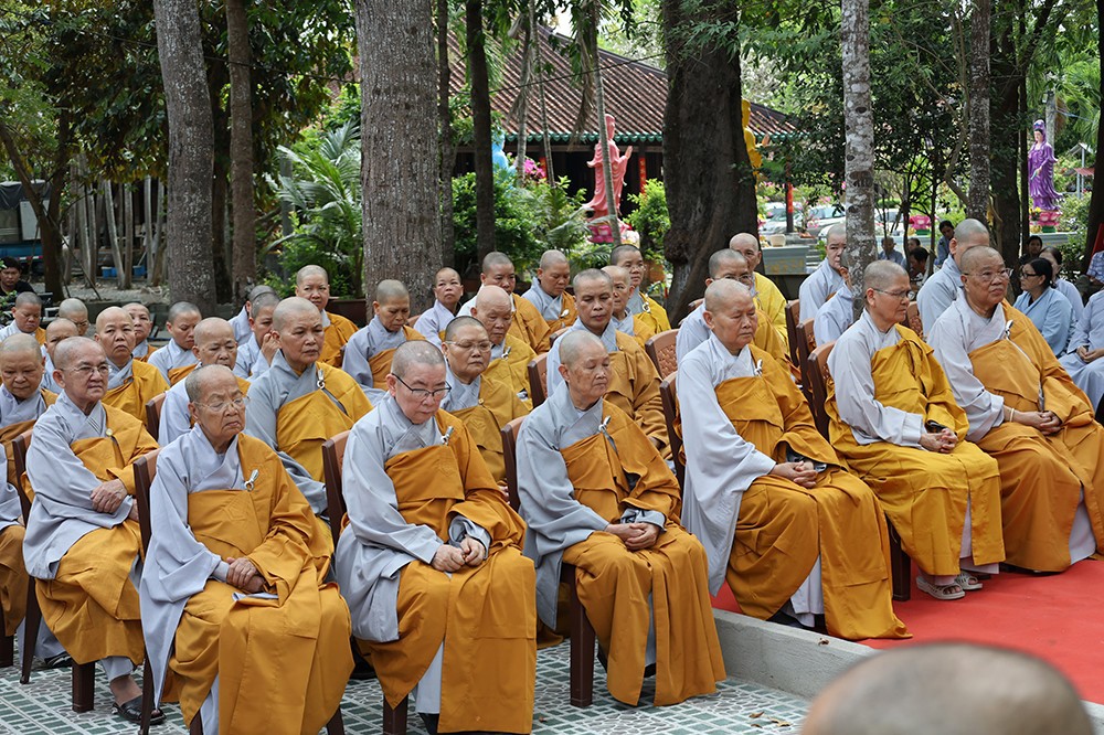 Buổi lễ diễn ra trong không khí trang nghiêm, thanh tịnh, với sự quang lâm chứng minh của chư tôn đức giáo phẩm: Trưởng lão Hòa thượng Huệ Văn – Thành viên Hội đồng Chứng minh GHPGVN; Hòa thượng Thiện Huệ – Thành viên Hội đồng Chứng minh, Chứng minh Ban Trị sự GHPGVN tỉnh; cùng Hòa thượng Minh Thiện – Ủy viên Hội đồng Trị sự, chư tôn đức Tăng Ni, Ni trưởng, trụ trì các tự viện và đông đảo Phật tử gần xa.