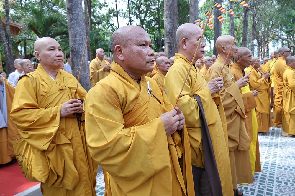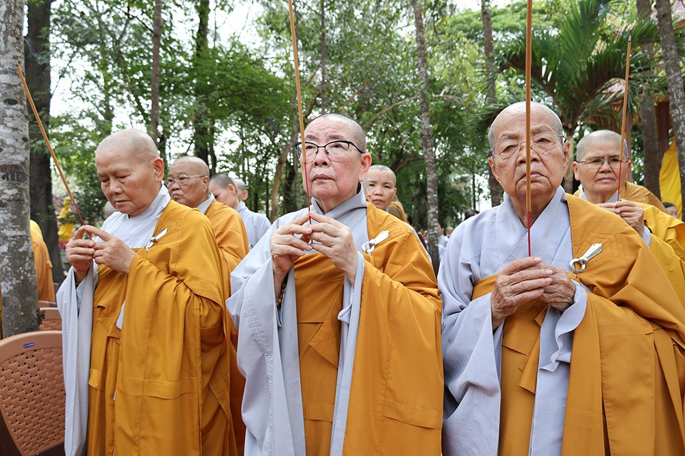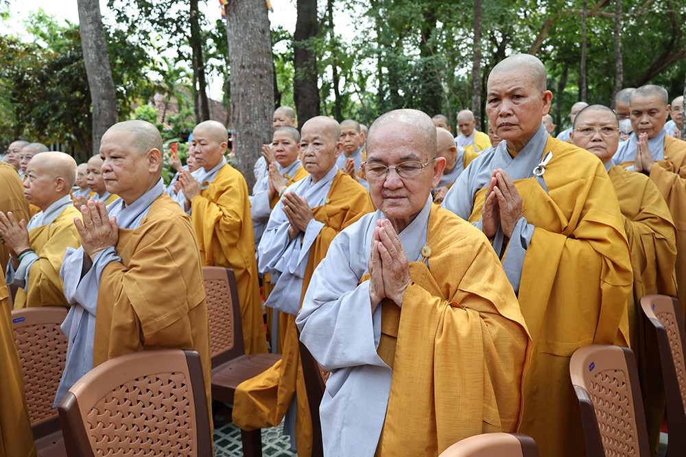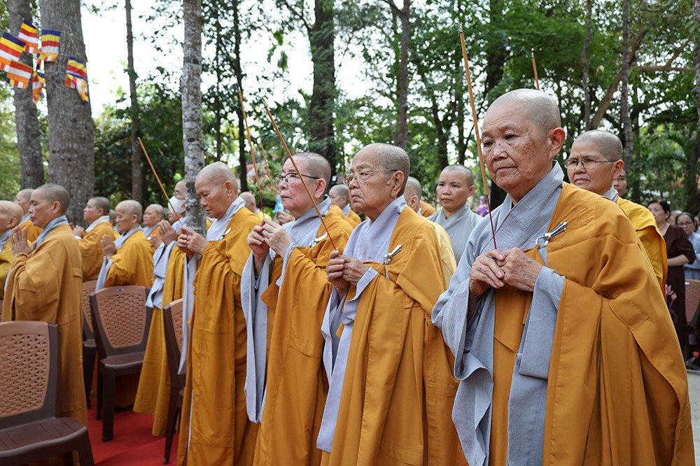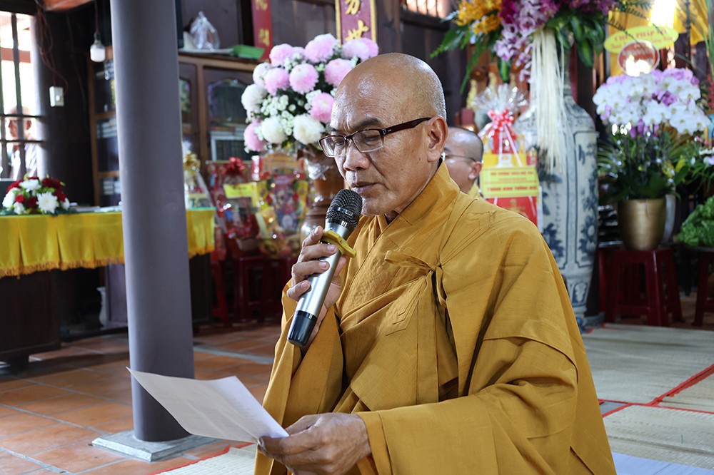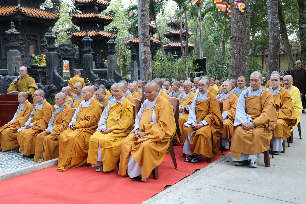 Buổi lễ diễn ra trong không khí trang nghiêm, thanh tịnh, với sự quang lâm chứng minh của chư tôn đức giáo phẩm: Trưởng lão Hòa thượng Huệ Văn – Thành viên Hội đồng Chứng minh GHPGVN; Hòa thượng Thiện Huệ – Thành viên Hội đồng Chứng minh, Chứng minh Ban Trị sự GHPGVN tỉnh; cùng Hòa thượng Minh Thiện – Ủy viên Hội đồng Trị sự, chư tôn đức Tăng Ni, Ni trưởng, trụ trì các tự viện và đông đảo Phật tử gần xa.