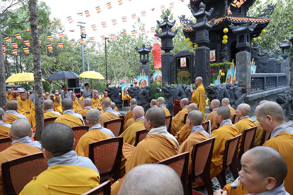 Sau lời đạo từ của Hòa thượng Thích Minh Thiện, chư tôn đức đã cử hành nghi thức niệm hương, sái tịnh trong âm thanh chuông trống Bát-nhã, khép lại đại lễ trong niềm hoan hỷ và trang nghiêm.
