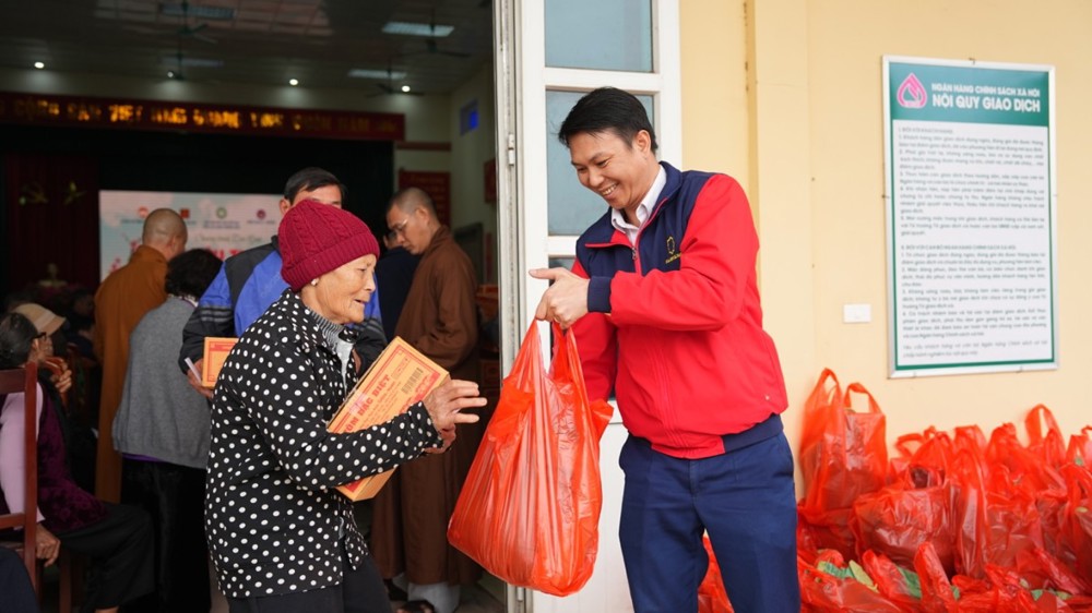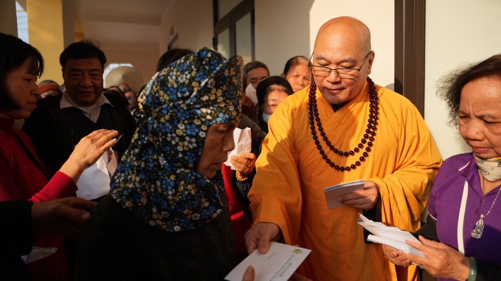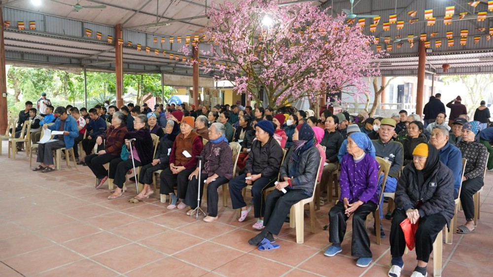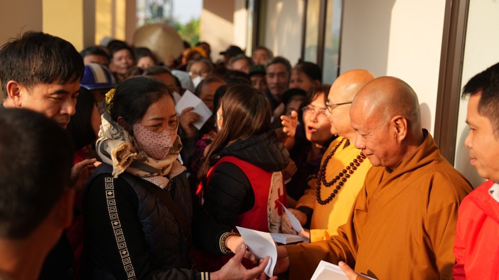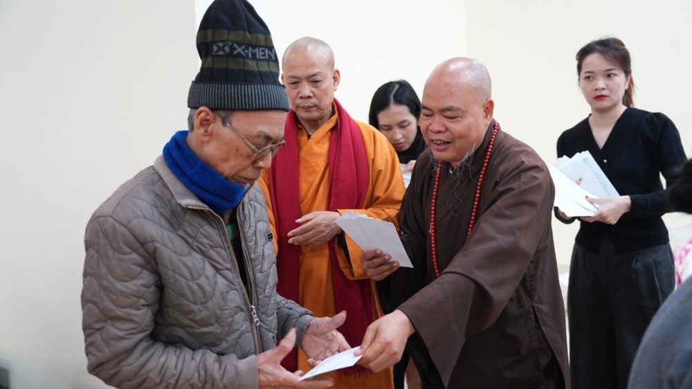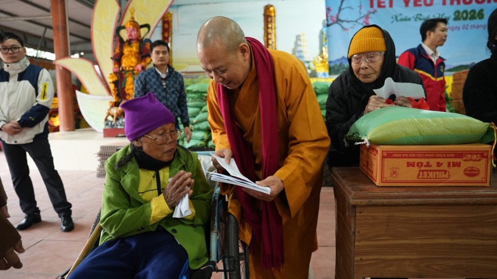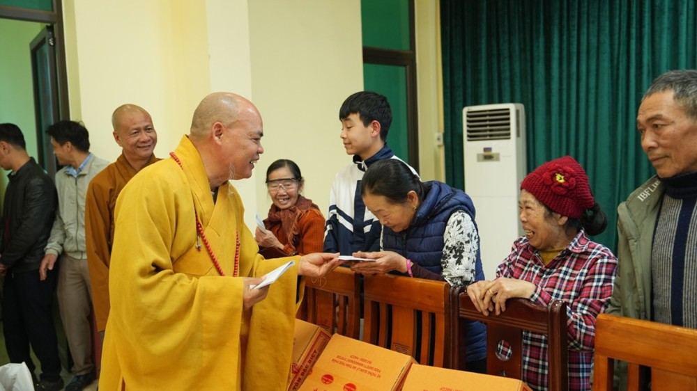 Tiếp nối hành trình thiện nguyện đầy ý nghĩa, chùa Thánh Long (tỉnh Hưng Yên) tiếp tục là điểm dừng chân quen thuộc hàng năm của đoàn từ thiện. Tại đây, đoàn đã trao tặng 800 phần quà Tết đến các hộ gia đình có hoàn cảnh đặc biệt khó khăn và người khuyết tật. Trong tiết trời ngày đông se lạnh, những cái nắm tay thật chặt, những nụ cười hiền hòa, ấm áp cùng những phần quà nghĩa tình được trao tận tay đã tạo nên một không gian thấm đẫm yêu thương, lan tỏa tinh thần sẻ chia và gắn kết. Đó cũng chính là sự gặp gỡ của những tấm lòng đồng cảm, là biểu hiện sinh động cho tinh thần “Phật giáo đồng hành cùng dân tộc”, luôn hiện hữu và sẻ chia cùng đời sống nhân dân.