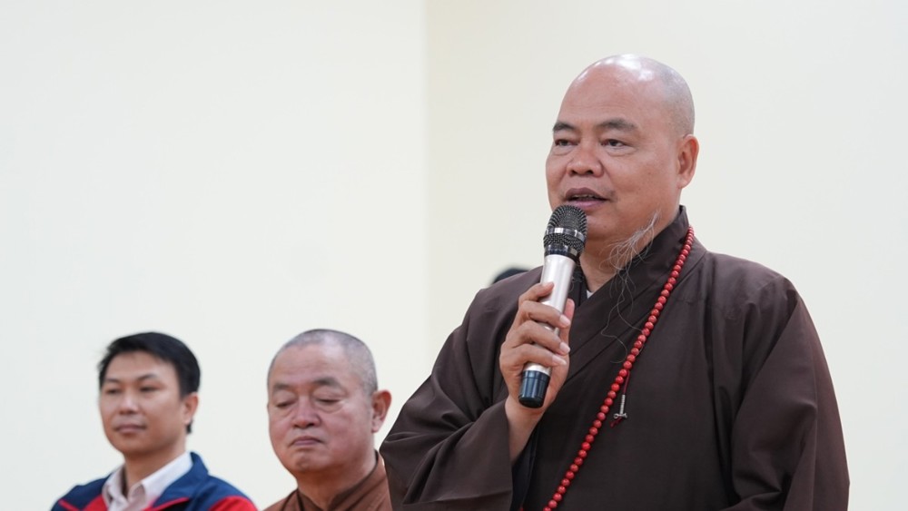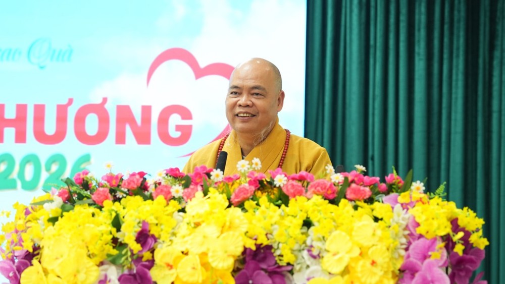 Thừa ủy quyền của Đại lão Hòa thượng Thích Trí Quảng - Đức Pháp chủ GHPGVN; Trưởng lão Hòa thượng Thích Thiện Nhơn – Phó Pháp chủ HĐCM, Chủ tịch HĐTS GHPGVN; Thượng tọa Thích Thanh Phong - Phó Chủ tịch HĐTS, Trưởng ban Kinh tế - Tài chính TW GHPGVN, Trưởng ban Từ thiện - Xã hội GHPGVN TP.HCM, trưởng đoàn công tác đã chuyển lời thăm hỏi ân cần, lời chúc xuân Bính Ngọ an lạc đến toàn thể bà con đồng bào. Hòa thượng chia sẻ, Hưng Yên không chỉ là một điểm dừng chân trong hành trình thiện nguyện, mà còn là quê hương gắn bó với nhiều ký ức thân thương của Thượng tọa từ những năm tháng ấu thơ. Chính những kỷ niệm sâu đậm ấy đã trở thành nguồn động lực để Thượng tọa luôn dành cho mảnh đất này sự quan tâm đặc biệt, trở về bằng tất cả tình cảm chân thành và tâm nguyện phụng sự. Đến nay đã gần 20 năm Thượng tọa cùng đoàn bền bỉ tổ chức chương trình Tết yêu thương; mang mùa Xuân, sự ấm áp cùng những món quà nghĩa tình đến với người dân các tỉnh thành phía Bắc. Thượng tọa hi vọng cuộc sống bà con sẽ ngày một cải thiện hơn, chung sức chung lòng xây dựng đời sống ấm no, hạnh phúc, góp phần vào sự phồn vinh của đất nước.