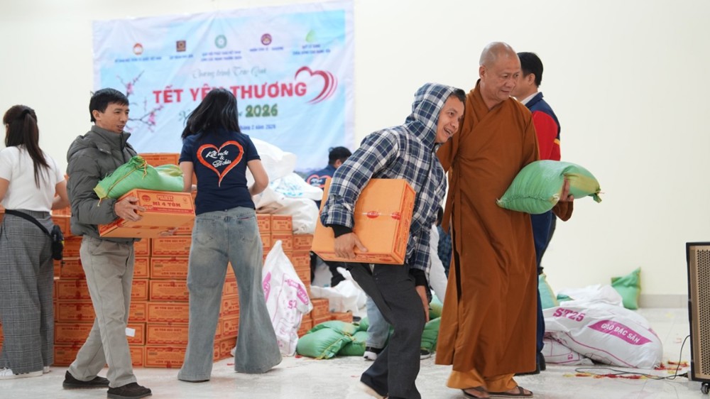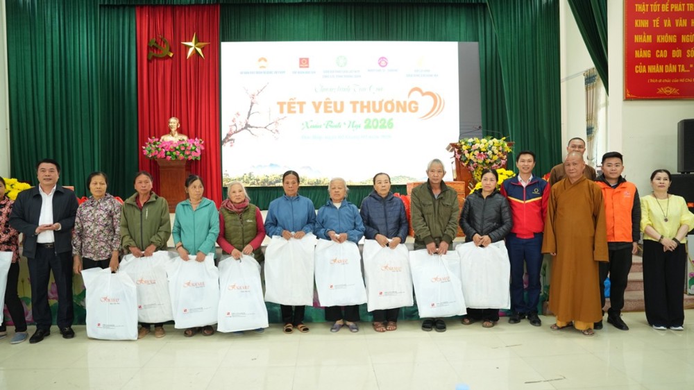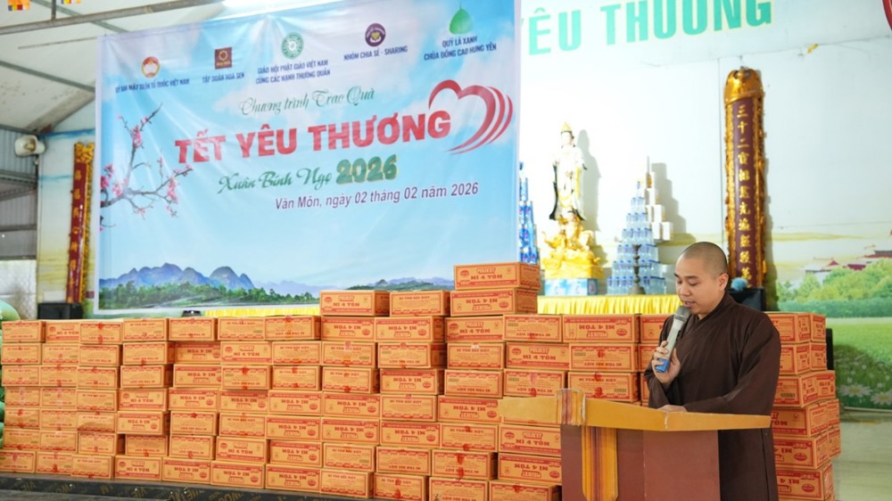Trong chuỗi hành trình “Tết yêu thương Xuân Bính Ngọ 2026”, ngày 02/02/2026, Đoàn Ban Kinh tế Tài chính TW GHPGVN, Ban TT-XH GHPGVN TP.HCM phối hợp với Nhóm Chia sẻ - Sharing, Quỹ Lá xanh chùa Đống Cao (Hưng Yên), Tập đoàn Hoa Sen, cùng các mạnh thường quân đã trao gửi hơn 2.000 phần quà đến tận tay người dân tỉnh Hưng Yên.