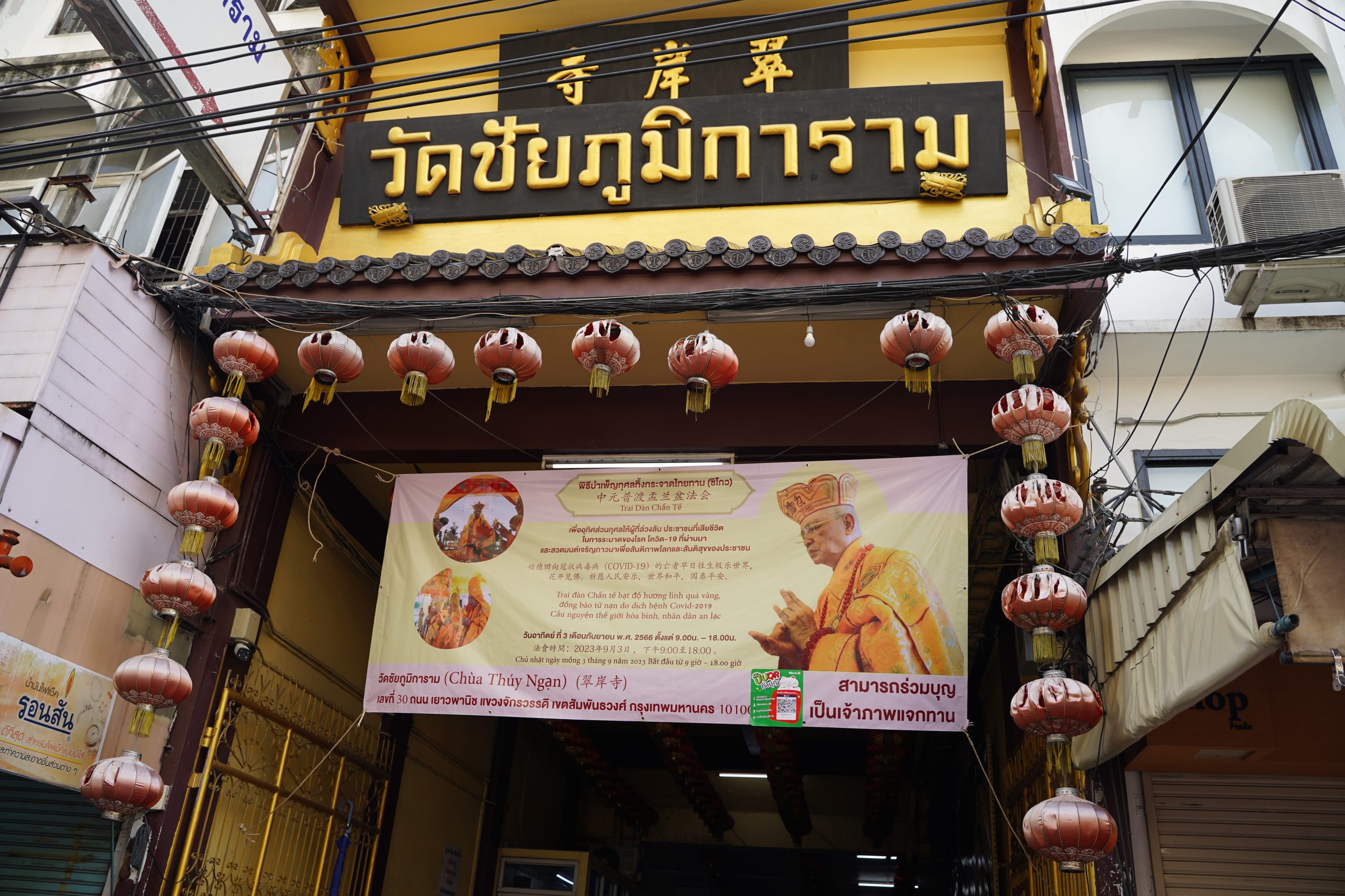 PSO - Ngày 03/09/2023, tại Chùa Thuý Ngạn (Wat Chaiya Pumnikaram), đường Chakkrawat, quận Samphanthawong, Bangkok đã trang nghiêm cử hành Pháp hội cầu nguyện hoà bình thế giới, Trai đàn Chẩn tế nguyện cầu âm siêu dương thái.
