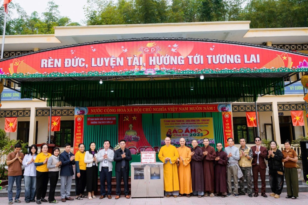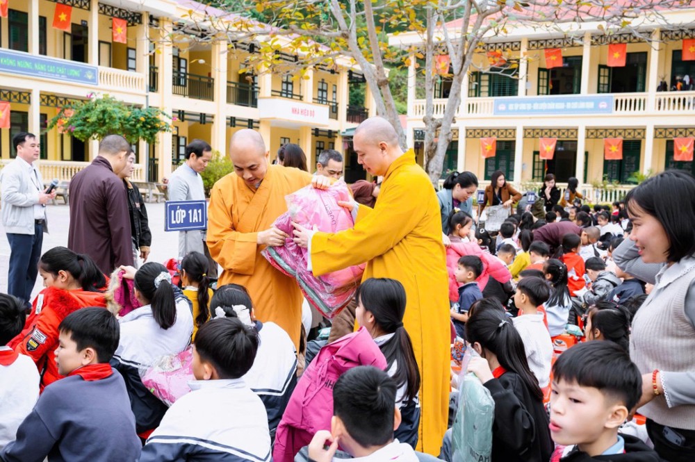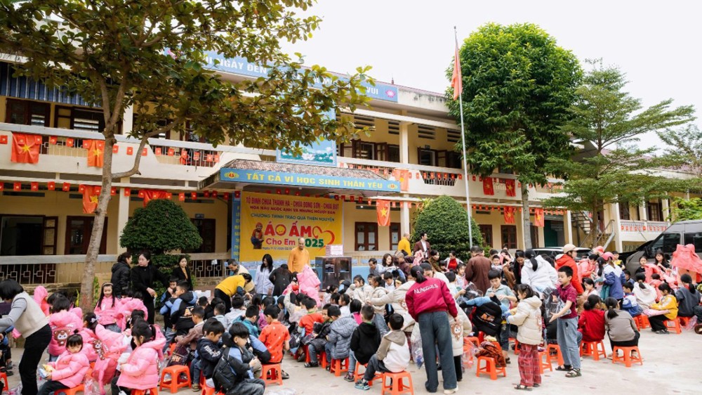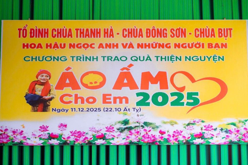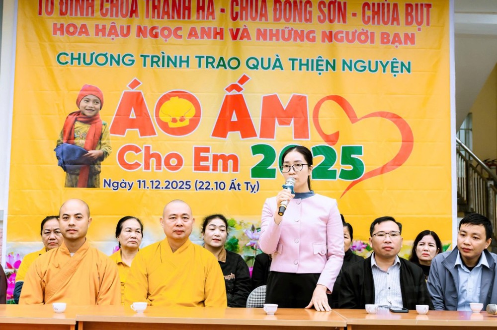 PSO – Ngày 11/12/2025, chư Tăng Tổ đình và quý Phật tử chùa Thanh Hà, chùa Đông Sơn, chùa Bụt và Hoa hậu Ngọc Anh cùng những người bạn đã tổ chức chương trình từ thiện “ Áo ấm cho em” tại xã Quan Sơn, xã Trung Hạ. Đây là hoạt động từ thiện thường niên nhằm chia sẻ yêu thương, hỗ trợ các em nhỏ vùng cao có hoàn cảnh khó khăn khi mua đông giá rét.
