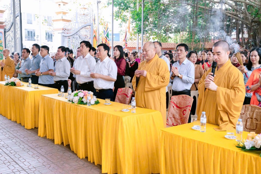 Về phía đại biểu khách mời có ông Hồ Việt Anh - Trưởng phòng Tín ngưỡng và Tôn giáo - Sở Dân tộc và Tôn giáo tỉnh; ông Bùi Quốc Đạt - Phó Bí thư Thường trực Đảng ủy phường Sầm Sơn; ông Lê Doãn Lương - Ủy viên Ban Thường vụ, Chủ tịch Ủy ban MTTQ phường Sầm Sơn, lãnh đạo các phòng, ban phường Sầm Sơn, đông đảo nhân dân Phật tử cùng tham dự.