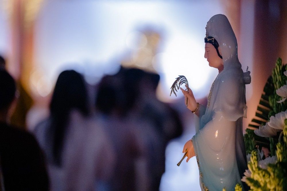 Buổi lễ khép lại, chư Tăng và Phật tử dâng nến cúng dường đến Bồ-tát Quán Thế Âm – biểu tượng của lòng từ bi vô lượng, thành kính cầu nguyện cho muôn loài được an lạc, đồng thời phát nguyện thực hành theo hạnh nguyện từ bi và cứu khổ của Ngài.