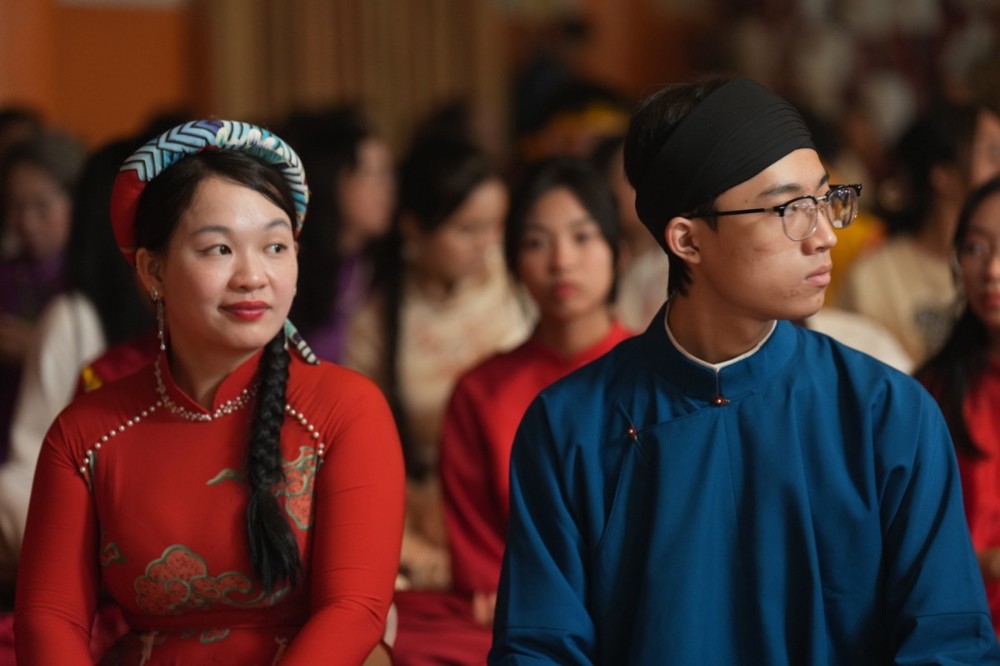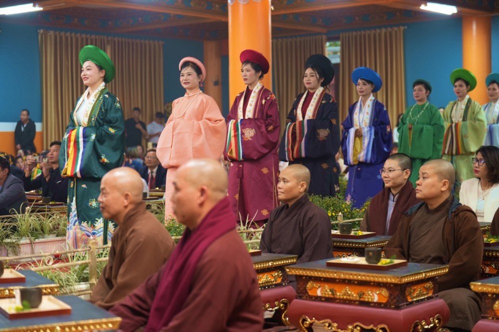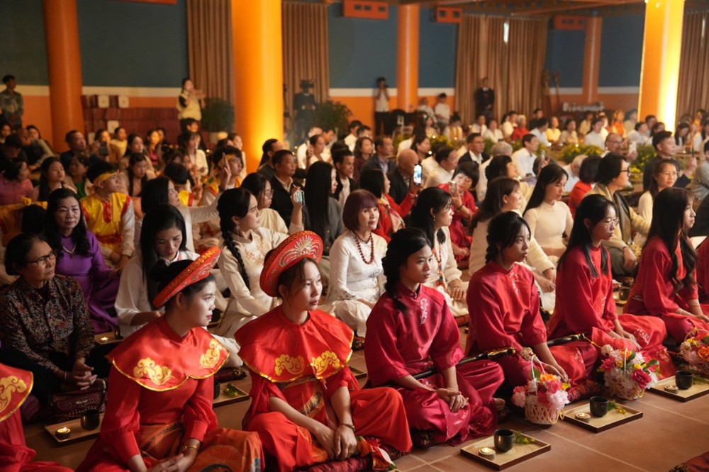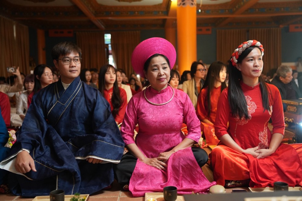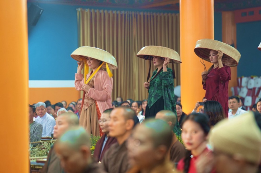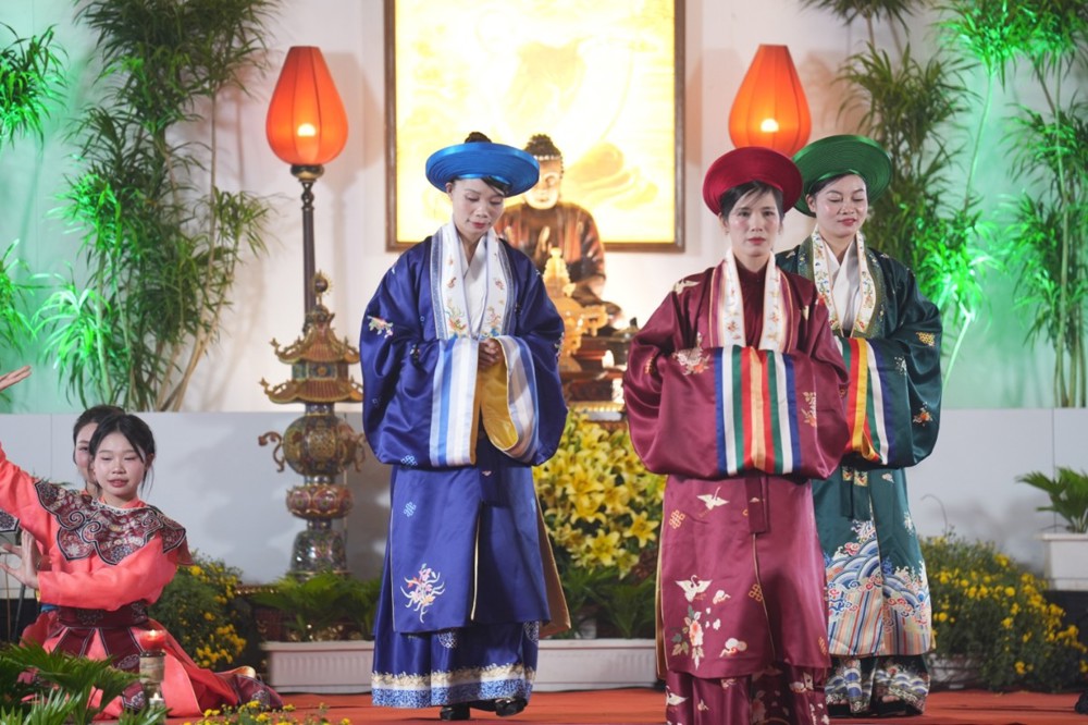 Sau những vần thiền thi sâu lắng, cả gian phòng cùng trở về với hơi thở của làng quê – của văn hóa dân tộc – của cội nguồn Việt qua phần Trình diễn Quốc phục truyền thống do nhân dân Làng Liên Trì thực hiện, họ không phải là người mẫu sân khấu, mà là những con người chân chất của đời sống thường ngày, mang trên mình hồn cốt quê hương.