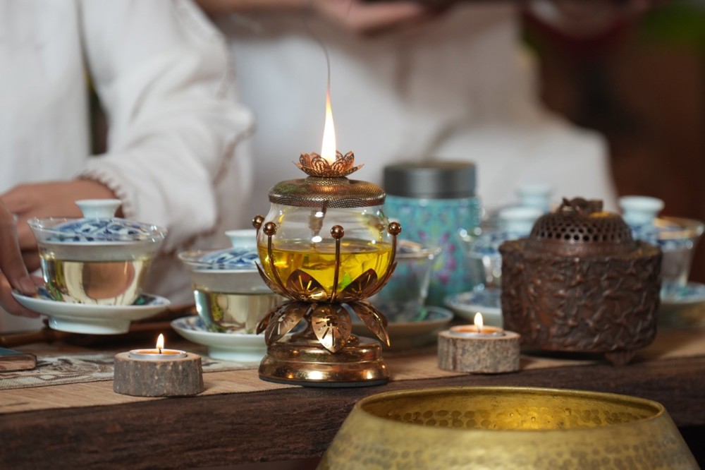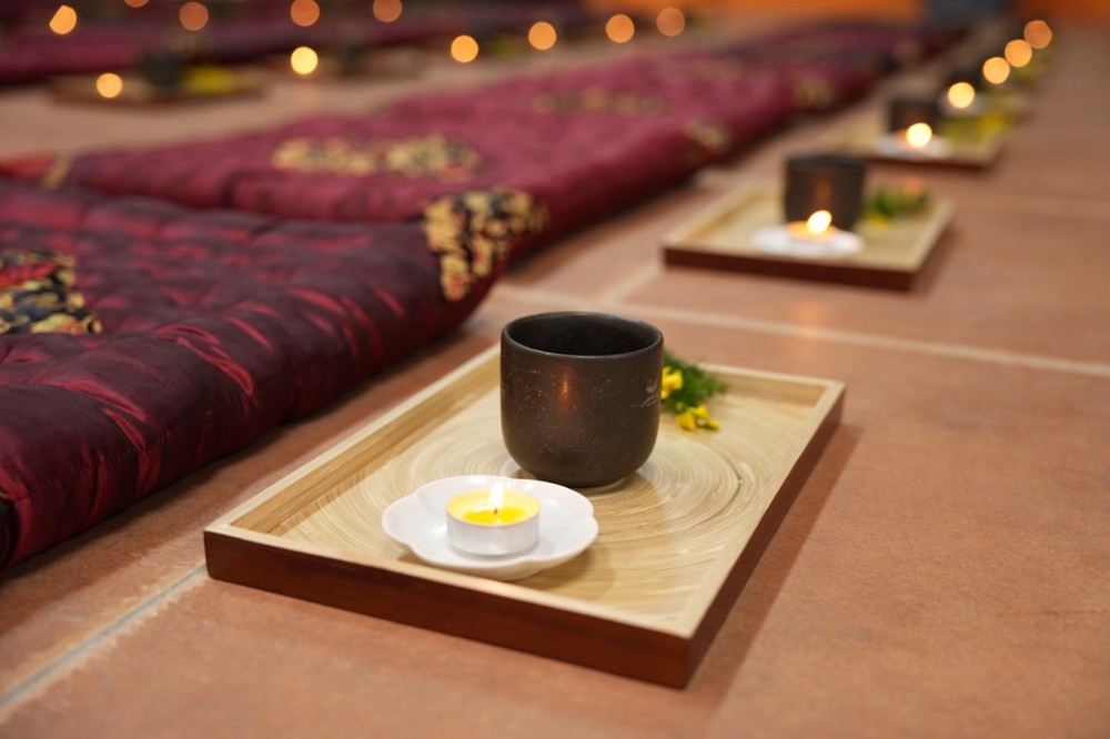 Giữa hương trầm nhẹ bay, giữa ánh sáng dịu lành, tiếng nhạc thiền êm ái bên tai, tất cả cùng hội tụ về nơi đây để bước vào không gian Thiền Trà Tri Ân – nơi nước và lửa gặp nhau, nơi tâm được soi chiếu qua từng giọt trà, và là nơi năng lượng từ bi được lan tỏa trong từng hơi thở chính niệm.