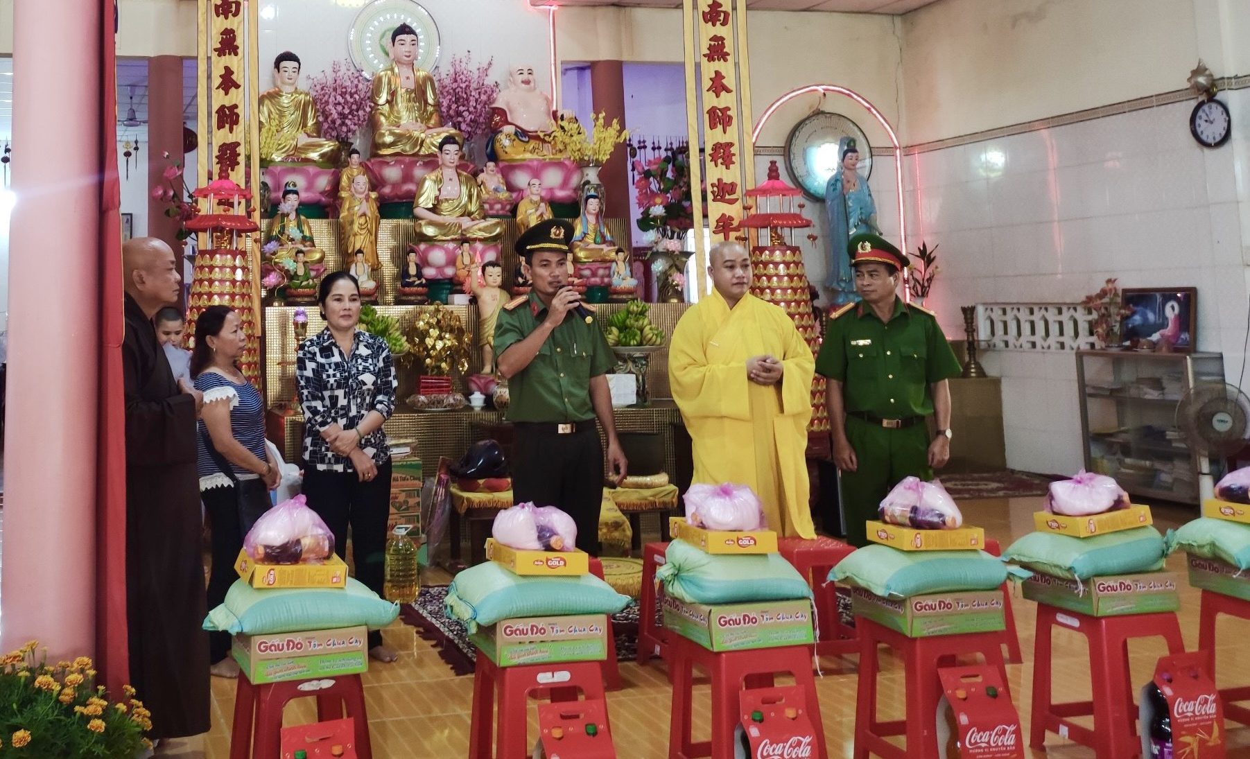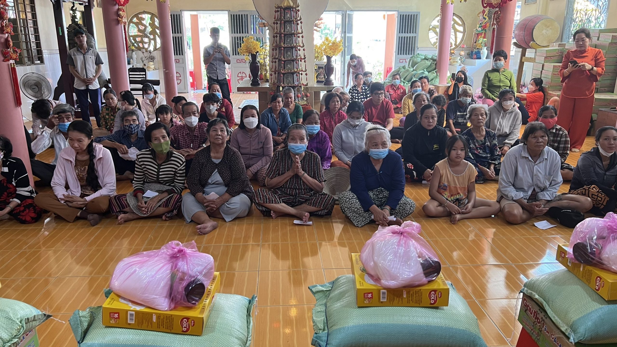 Tham dự buổi phát quà có HT. Thích Quảng Thới - Chứng minh Ban Trị sự GHPGVN thị xã Gò Công; Đại đức Thích Đức Lộc - Uỷ viên Thường trực Phân ban Từ thiện Đối ngoại và Quan hệ Quốc tế thuộc Ban TTXH Trung ương. Về phía chính quyền có ông Dương Tấn Thành - Đội trưởng Đội An ninh Công an thị xã Gò Công, cùng quý vị trong phái đoàn; Đại diện xã có bà Nguyễn Thị Lành - Chủ tịch UBMTTQVN xã Bình Đông, cùng đoàn thể ban ngành về dự lễ; Đại diện các mạnh thường quân có phái đoàn Phật tử Từ Xứng - Nhóm Tình Thương Mến Thương (TP.HCM).