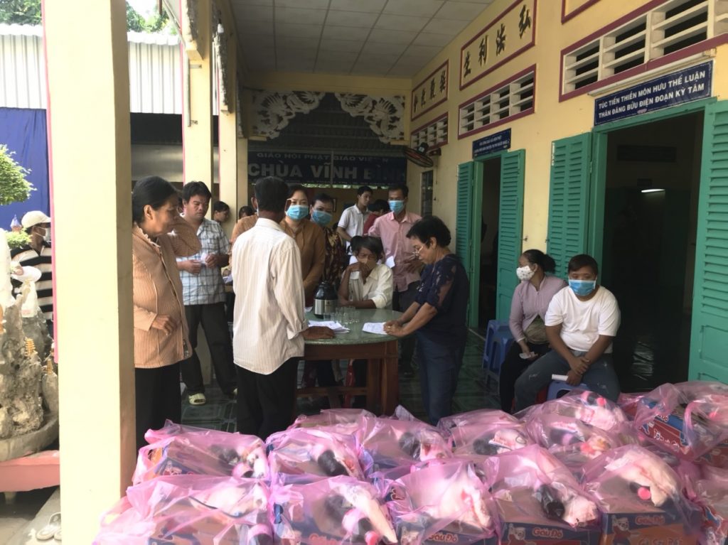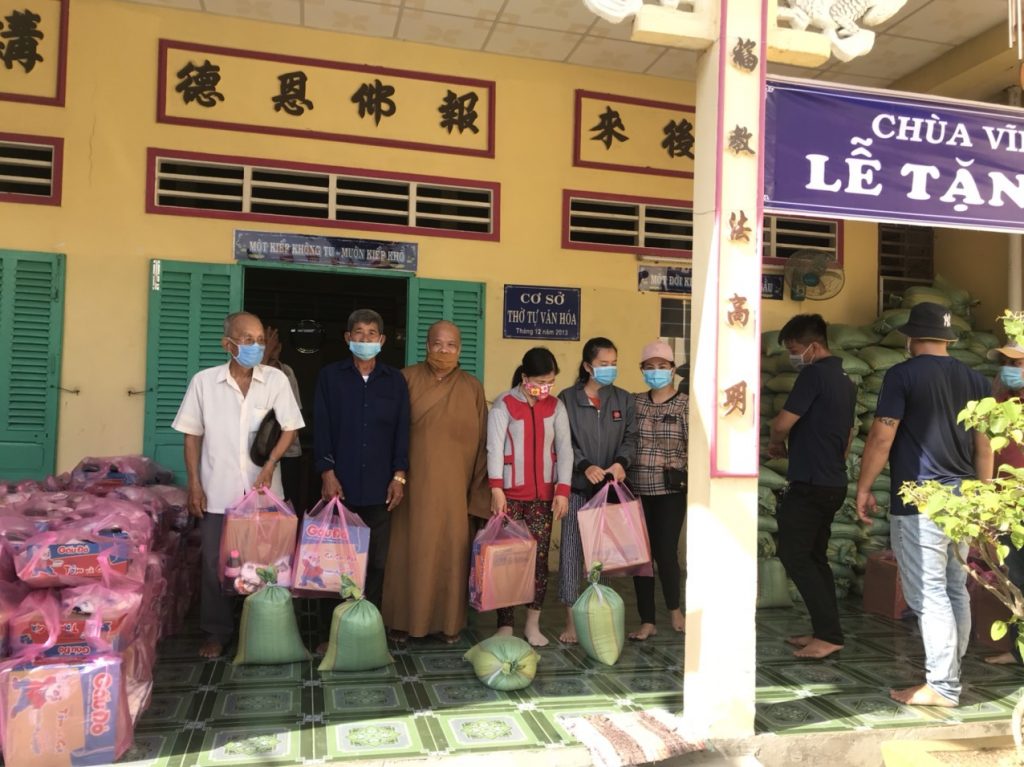 Dịch bệnh Covid-19 tái phát trở lại đã ảnh hưởng rất lớn đến đời sống kinh tế của xã hội nói chung và bà con lao động nghèo nói riêng. Đồng cảm cùng bà con, Đại đức Trụ trì chùa Vĩnh Bình đã vận động quý Phật tử và các nhà hảo tâm cùng chung tay giúp đỡ bà con vượt qua khó khăn trong cuộc sống cũng như hỗ trợ các học sinh chuẩn bị đón năm học mới.