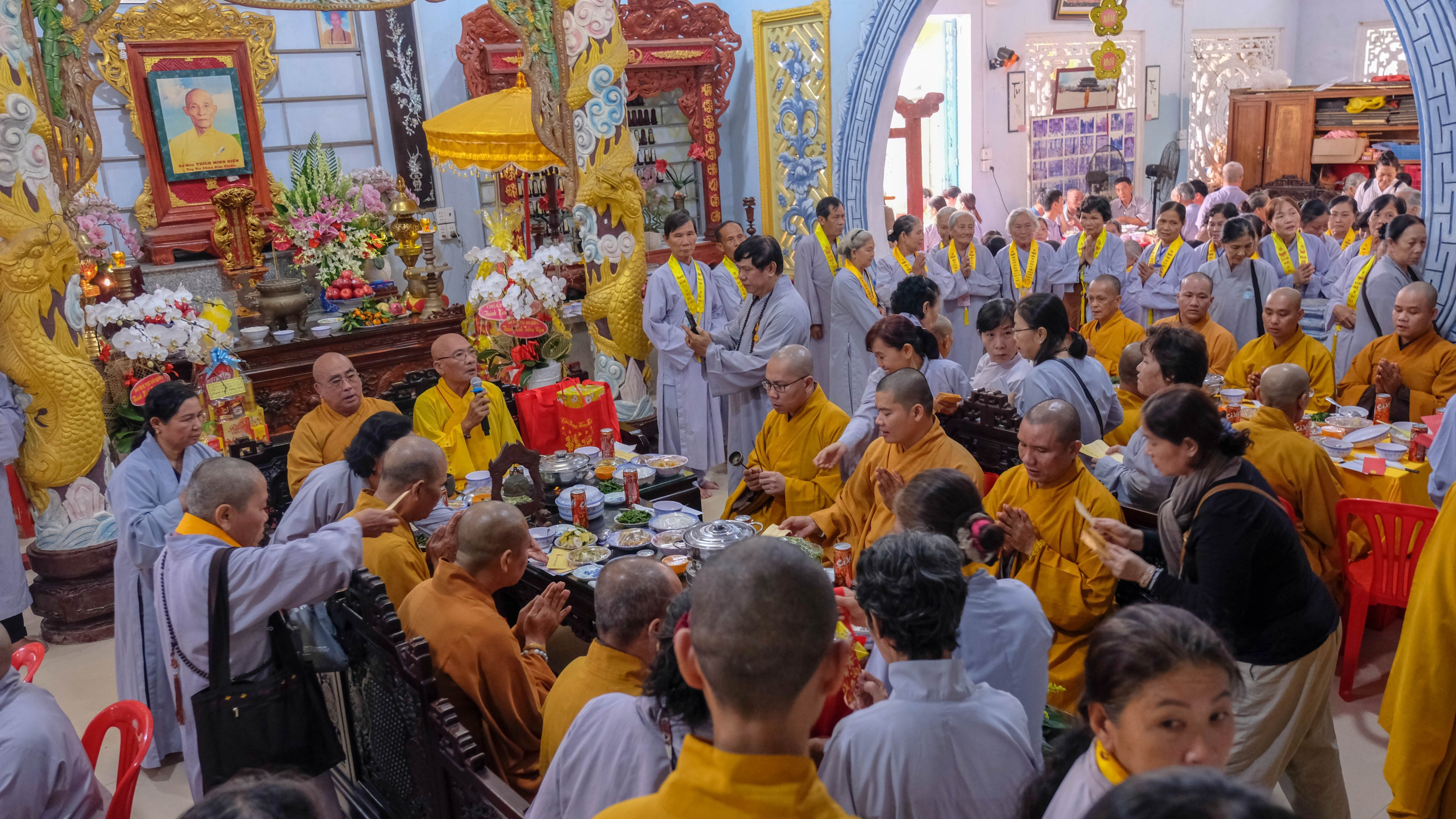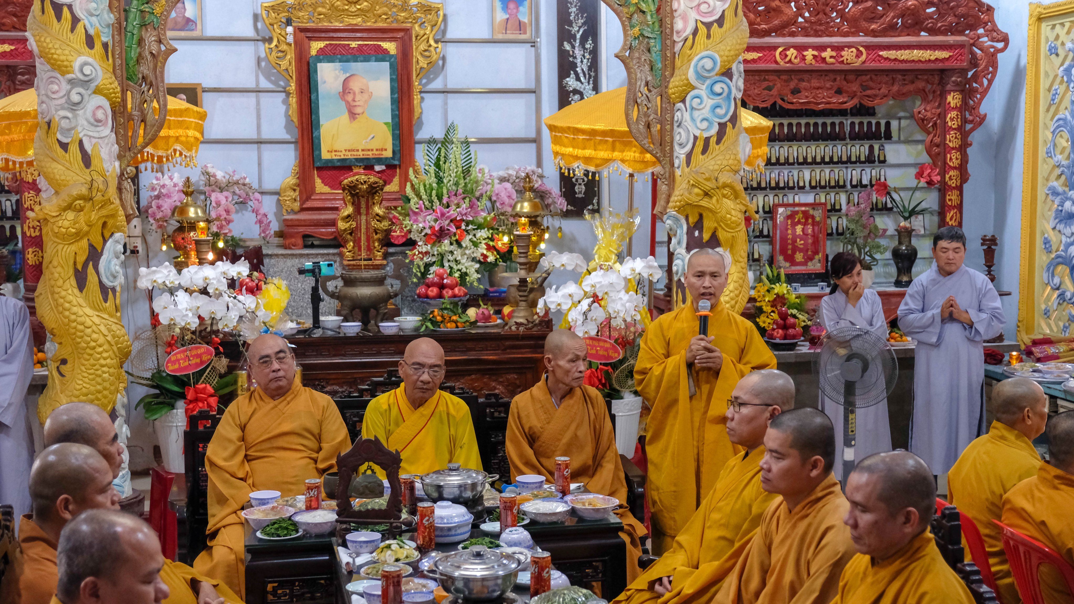 Chứng minh tham dự buổi lễ có TT.Thích Minh Quang, Trưởng BTS Phật giáo Q.1 (TP.HCM) cùng chư Tôn đức BTS Phật giáo huyện, trụ trì các tự viện, đại diện chính quyền địa phương và đông đảo Phật tử đạo tràng chùa Kim Thiền về tham dự buổi lễ.
