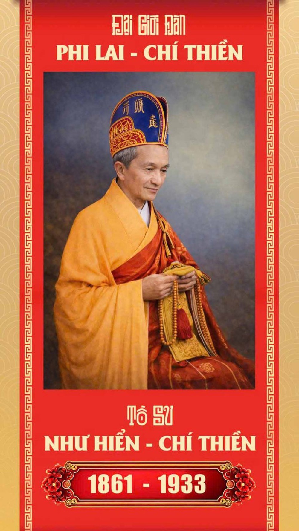 Nam mô Phi Lai đường thượng Từ Lâm Tế Gia Phổ, tam thập cửu thế, Pháp húy Như Hiển, hiệu Chí Thiền, Nguyễn Công Hòa thượng Tổ sư tác đại chứng minh.