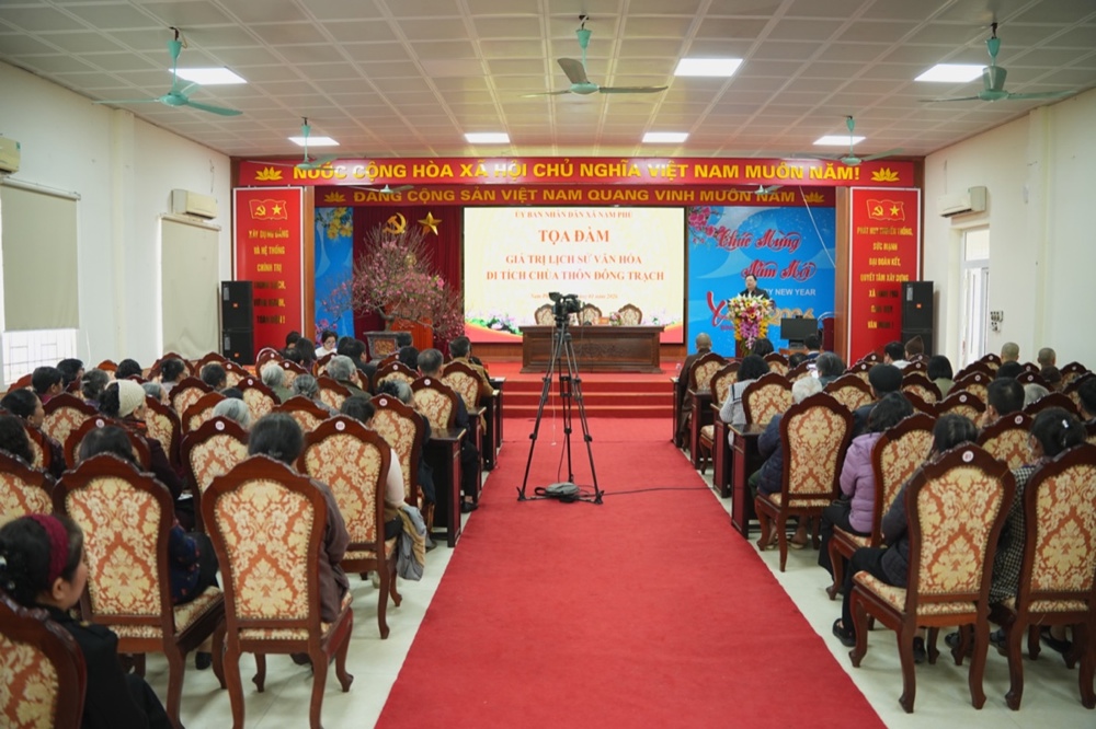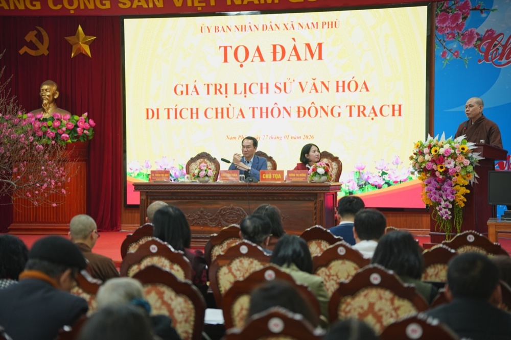 Chiều ngày 27/01/2026, UBND xã Nam Phù (TP. Hà Nội) đã phối hợp cùng các cơ quan ban ngành, Viện nghiên cứu, các chuyên gia tổ chức toạ đàm với chủ đề: “Giá trị lịch sử văn hoá di tích chùa Thôn Đông Trạch”, tại UBND xã.