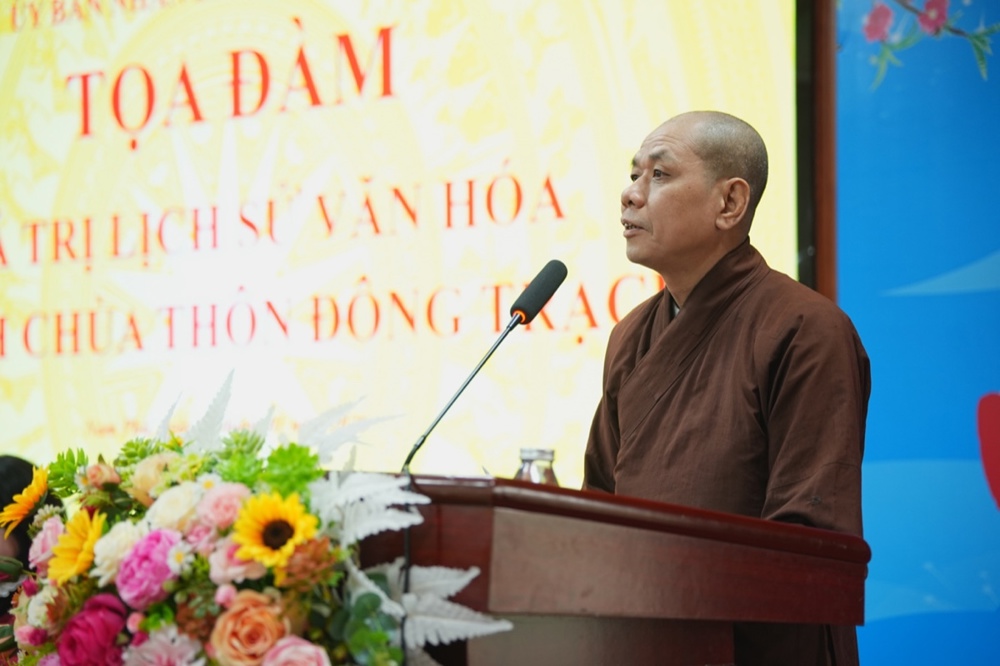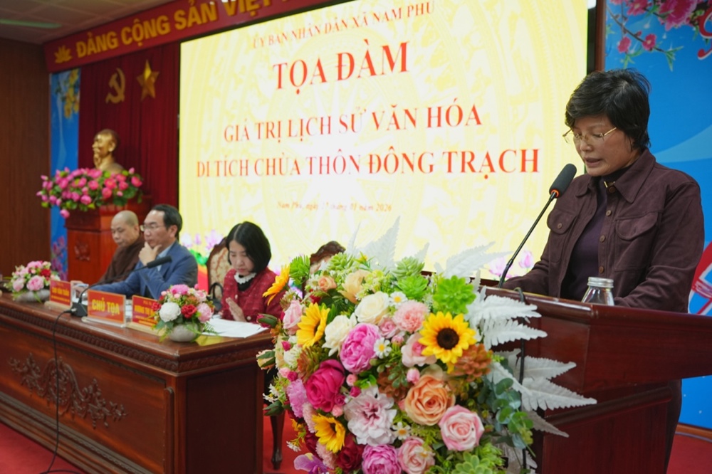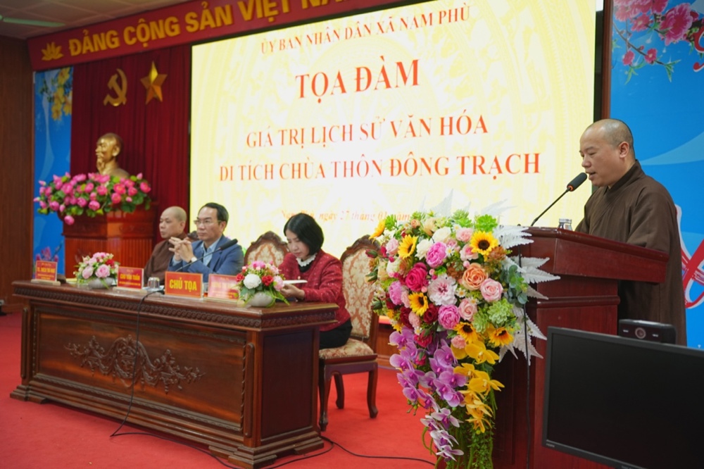 Phát biểu khai mạc, ông Nguyễn Văn Sung nhấn mạnh: thời gian qua, xã Nam Phù đặc biệt quan tâm đến công tác bảo tồn, trùng tu, tôn tạo các di tích lịch sử – văn hóa nhằm phát huy giá trị di sản. Việc tổ chức tọa đàm là dịp quan trọng để nhận diện, làm rõ giá trị lịch sử, văn hóa, kiến trúc của chùa Đông Trạch trên cơ sở các chứng tích, tư liệu khoa học, từ đó đề xuất giải pháp bảo tồn và phục dựng di tích trong thời gian tới.