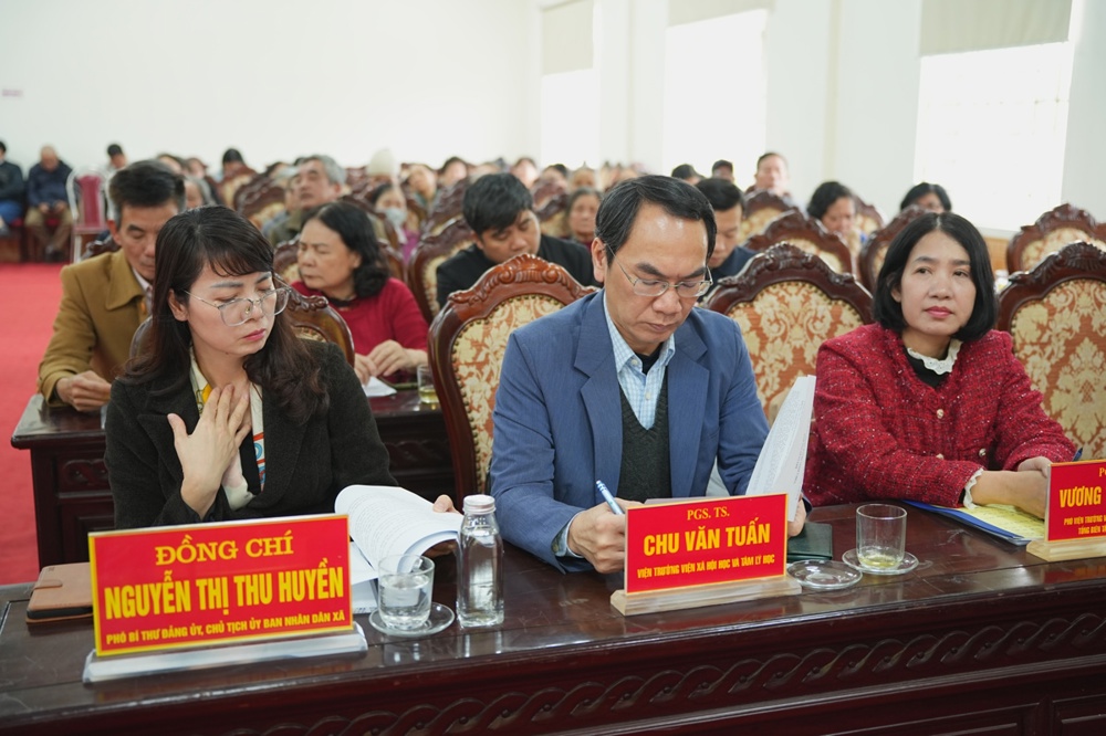 Tọa đàm có sự tham dự của: PGS.TS Chu Văn Tuấn – Viện trưởng Viện Xã hội học và Tâm lý học; PGS.TS Vương Thị Hường – Phó Viện trưởng Viện Nghiên cứu Hán Nôm, Tổng Biên tập Tạp chí Hán Nôm; PGS.TS Nguyễn Thị Phương Chi – Viện Sử học, Viên Hàn lâm Khoa học Việt Nam; Th.S Trịnh Văn Khoa – Viện trưởng Viện Văn hoá Tôn giáo tín ngưỡng Việt Nam; Bà Phạm Bảo Khánh – Trưởng phòng Nghiệp vụ 2, Sở Dân tộc và Tôn giáo TP. Hà Nội; cùng đại diện sở, ban, ngành các cấp và nhân dân địa phương.