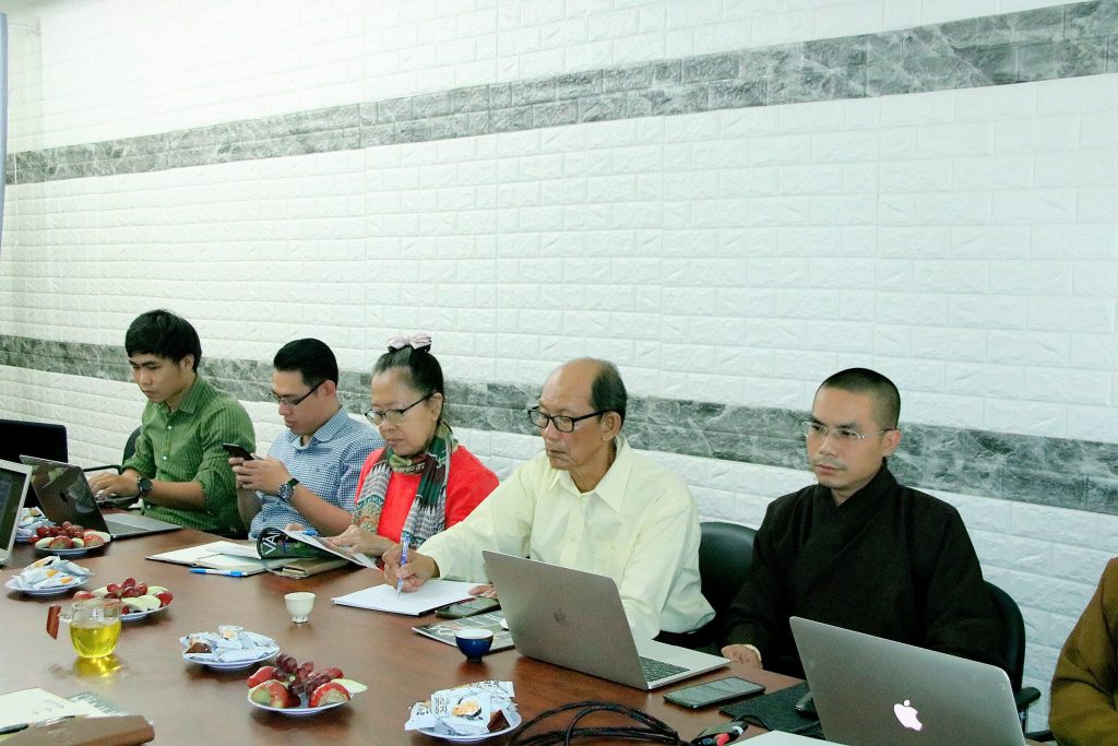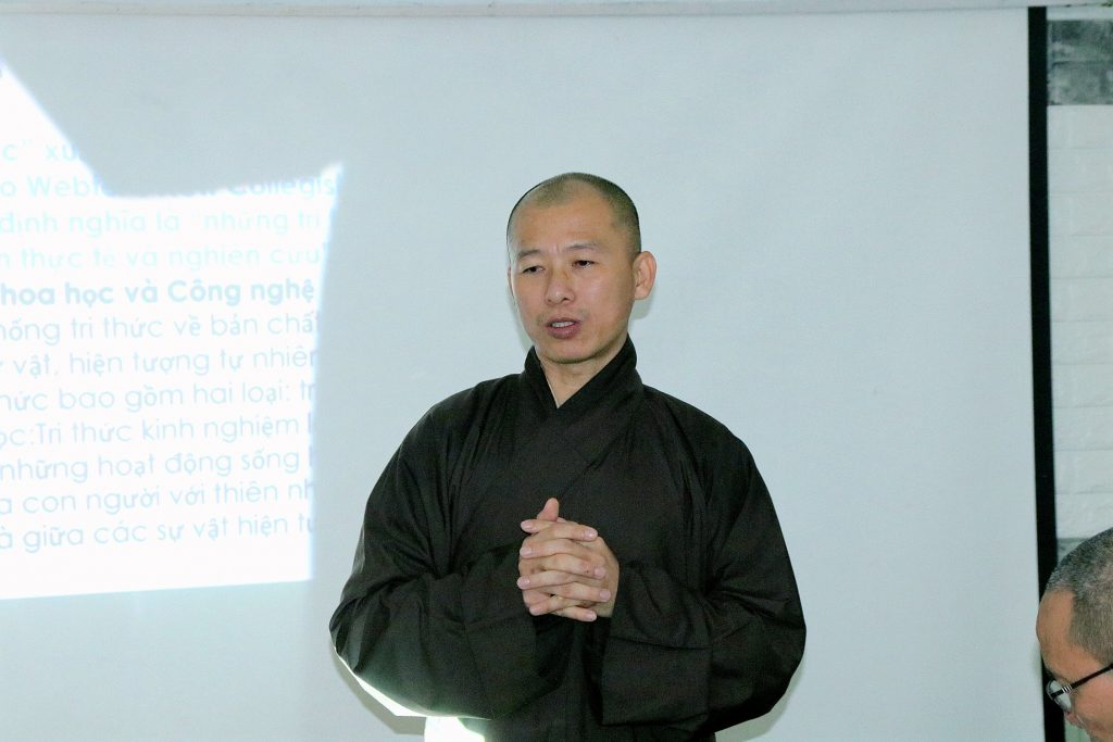 Mở đầu buổi họp TT. Thích Minh Nhẫn giới thiệu khái quát nội dung buổi toạ đàm do TS. Đỗ Đức Khả trình bày đó là cách cách viết 1 bài báo khoa học chuẩn khi được đăng trên Tạp chí VHPG.