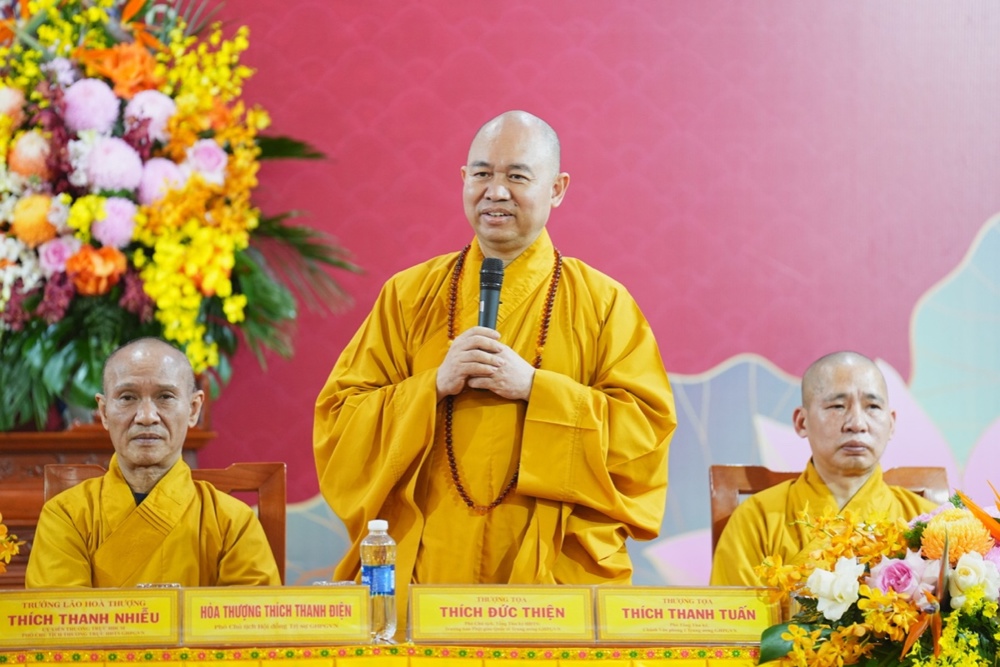 Trong phần chia sẻ, Thượng tọa Thích Đức Thiện cũng nhấn mạnh tới tinh thần “nhập thế” của đạo Phật. Trên nền tảng kế thừa tinh hoa ấy, Giáo hội Phật giáo Việt Nam không ngừng dấn thân phụng sự, đóng góp thiết thực cho sự phát triển của đất nước, qua đó củng cố niềm tin sâu rộng của nhân dân đối với Phật giáo. Hiện nay, GHPGVN chủ trương thúc đẩy hoằng dương chính pháp, trao đổi hợp tác với Phật giáo các nước, trên tinh thần chung tay lan tỏa giáo lý từ bi của đạo Phật đến mọi nơi và đề cao sự hòa bình, hạnh phúc. Trong nước, Phật giáo Việt Nam luôn đồng hành cùng chính quyền, nhận được sự hỗ trợ tích cực từ các bộ, ban, ngành trong việc tổ chức các sự kiện quy mô lớn, bảo đảm an ninh, an toàn và góp phần quan trọng vào thành công chung. Đời sống tôn giáo tại Việt Nam ngày càng phát triển theo hướng tự do, đa dạng và hài hòa, được bảo đảm bởi Hiến pháp và pháp luật, qua đó tạo điều kiện thuận lợi để các tôn giáo, trong đó có Phật giáo, phát huy vai trò của mình trong đời sống xã hội. Bên cạnh đó, lĩnh vực giáo dục Phật giáo cũng được đặc biệt chú trọng. Hệ thống chương trình đào tạo được thống nhất trên phạm vi toàn quốc; chất lượng giảng dạy và đội ngũ giáo thọ, giảng viên không ngừng được nâng cao, đáp ứng yêu cầu đào tạo trong thời kỳ hội nhập.