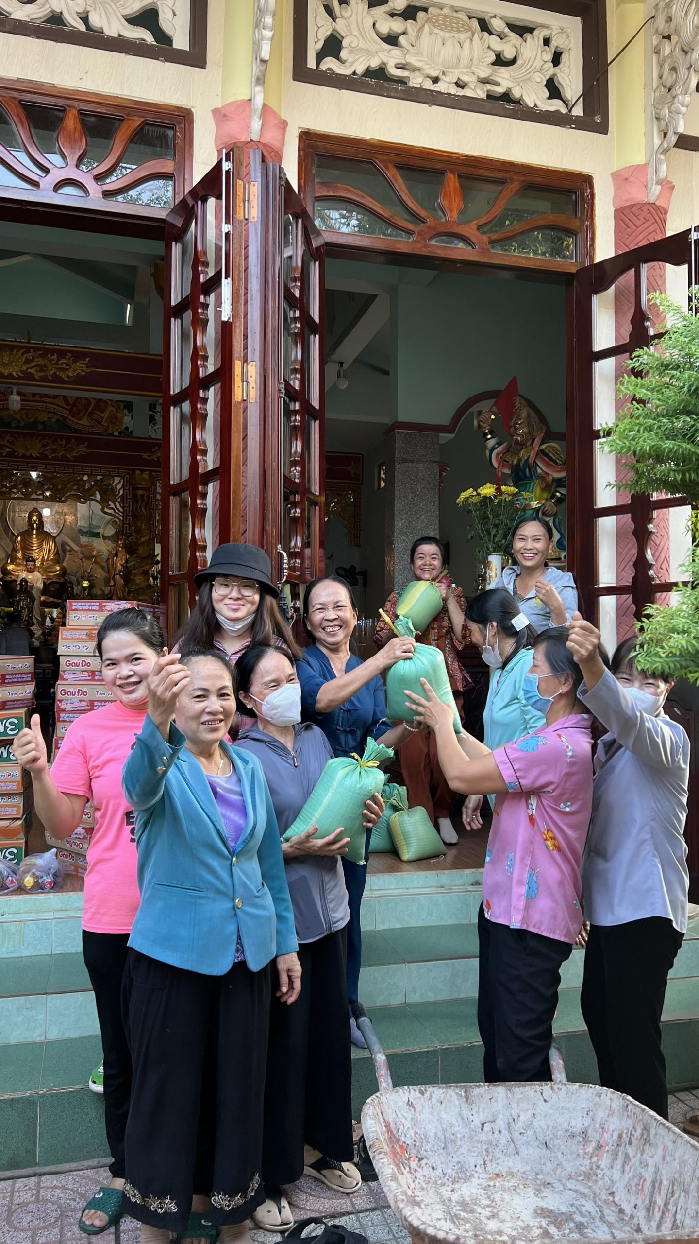 Chiều cùng ngày, Đại đức Trụ trì cùng Phật tử đã trao tặng 100 phần quà đến đồng bào khó khăn và 40 phần quà dành cho người khiếm thị.