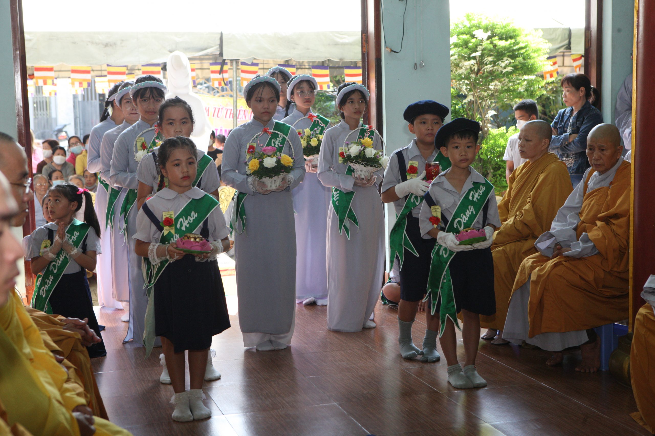Tại buổi lễ, sau phần Dâng hoa cúng dường, các em Gia đình Phật tử đã cài hoa đến quý Tôn đức, Phật tử hiện diện trong tinh thần "Bông hồng Cài áo" của Cố Thiền sư Thích Nhất Hạnh.