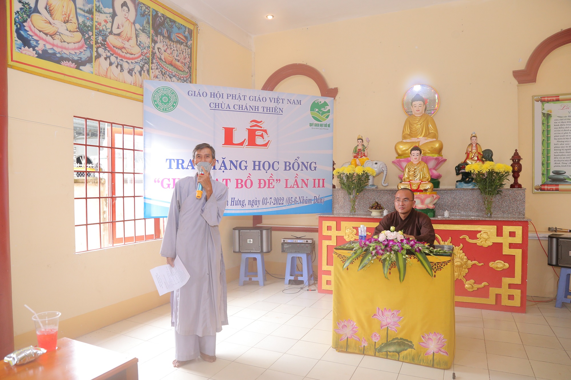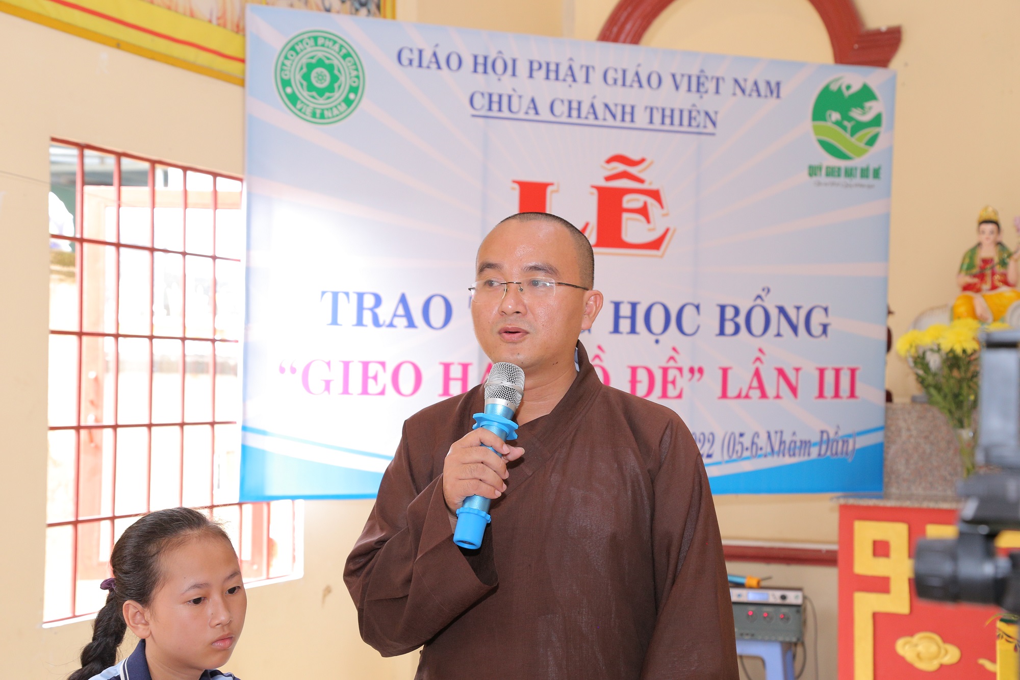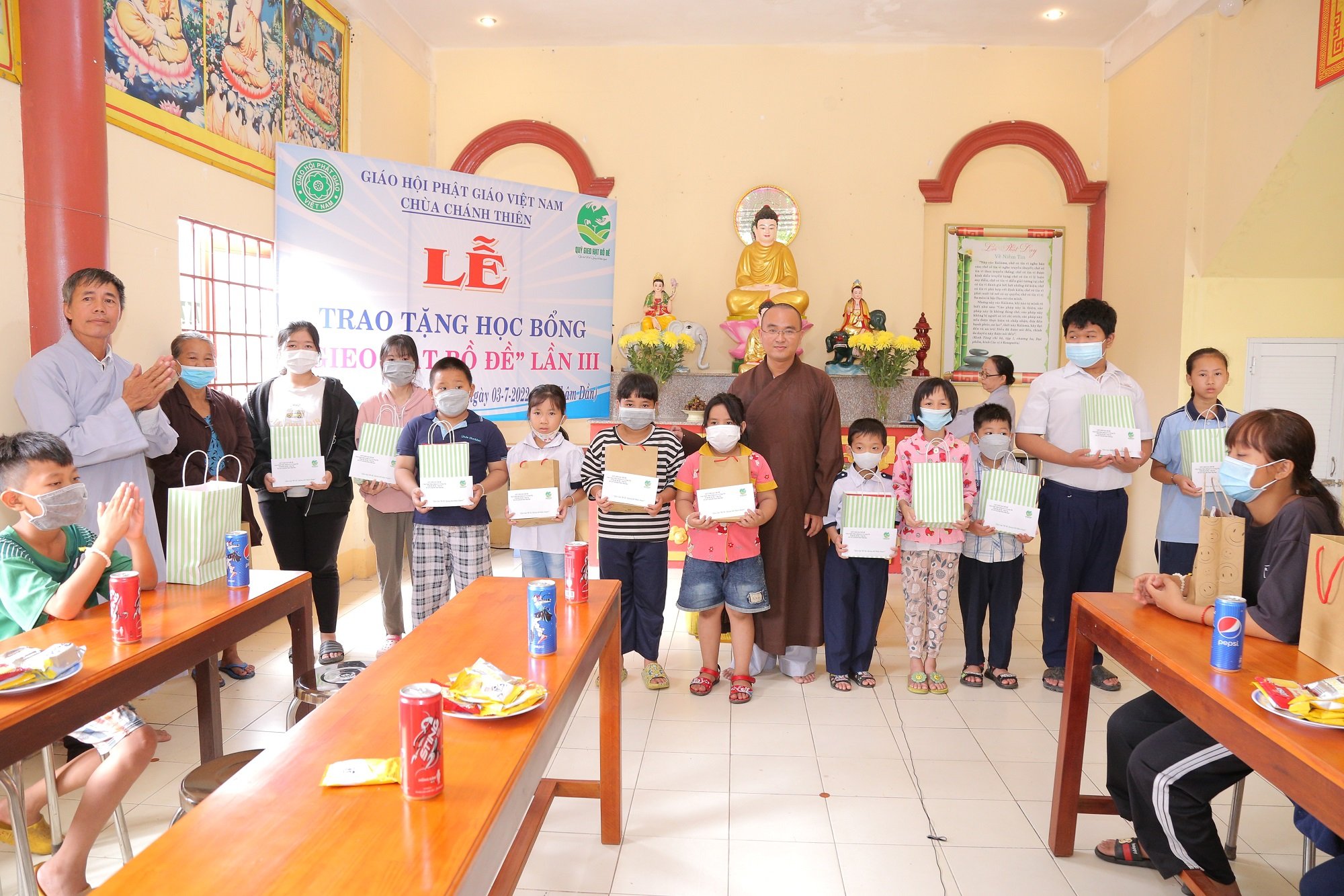 Được biết, mỗi suất học bổng trị giá 600 ngàn đồng, gồm có sách, dụng cụ học tập và tiền mặt 500 ngàn đồng. Tổng trị giá của 33 suất học bổng là hơn 18 triệu đồng, do Quỹ Gieo hạt Bồ Đề (chùa Chánh Thiên) vận động các nhà hảo tâm, Phật tử xa gần ủng hộ.