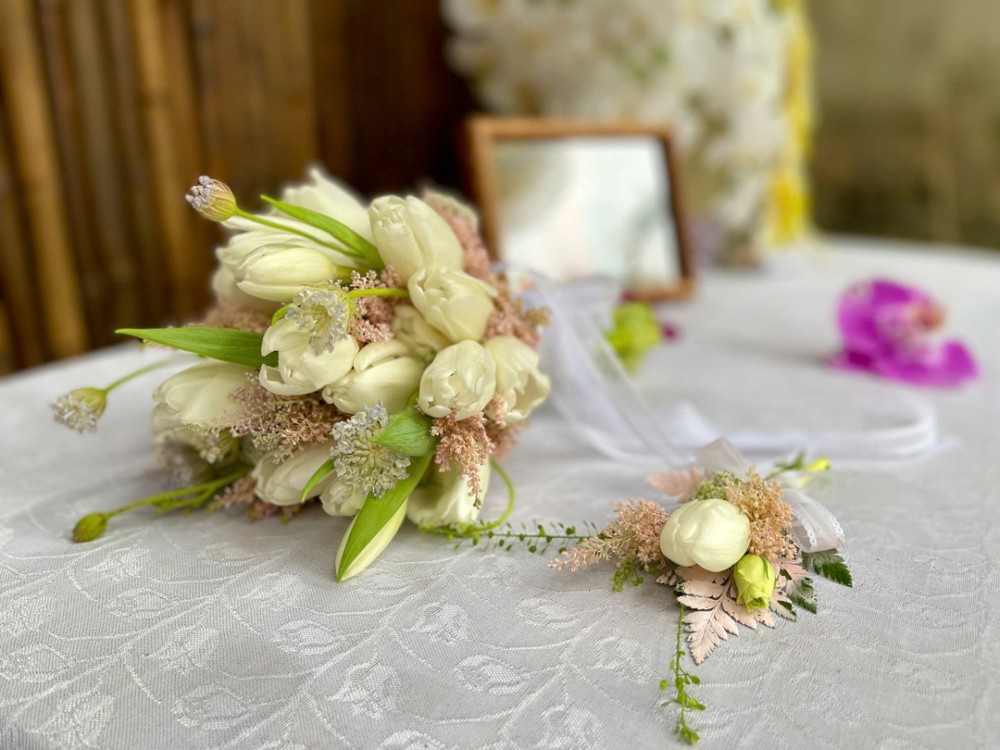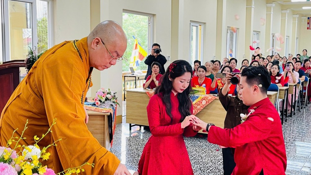 Giữa không gian tĩnh lặng của chốn thiền môn, khi tiếng chuông ngân vang nhẹ nhàng, đôi bạn trẻ chắp tay đối diện nhau, trao nhau ánh nhìn chan chứa niềm tin và nhân duyên. Họ không chỉ trao nhau chiếc nhẫn, mà còn trao gửi lời nguyện sống trọn nghĩa vợ chồng, đồng hành trên con đường thiện lành. Tình yêu trong giây phút ấy không còn là cảm xúc nhất thời, mà trở thành sự tỉnh thức, là hành trình cùng nhau nuôi dưỡng hiểu biết và yêu thương.