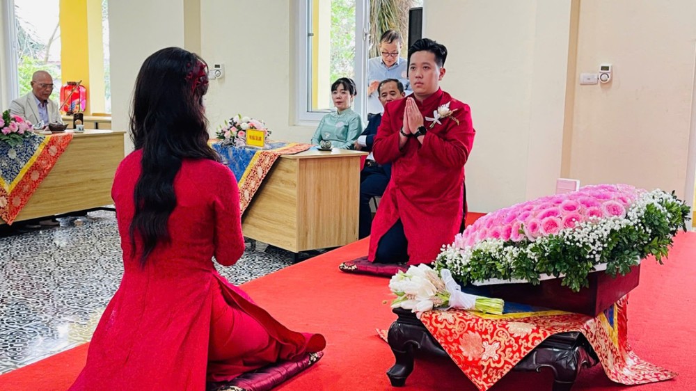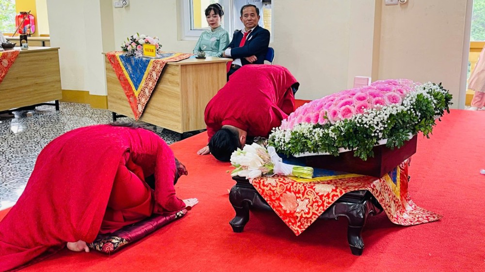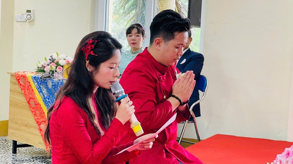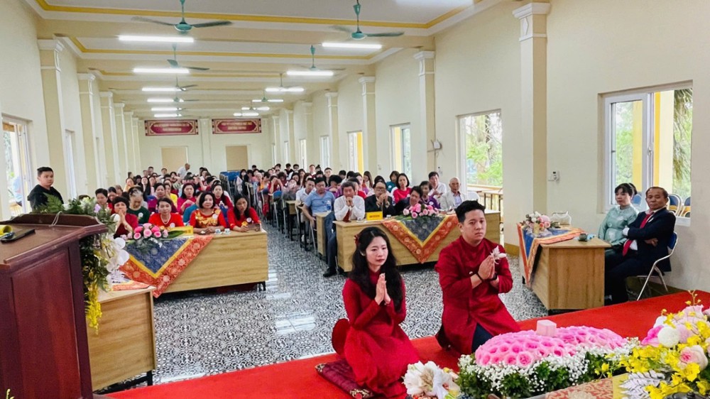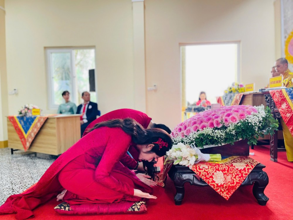 Trong không khí trang nghiêm của Tam Bảo, đôi tân lang – tân nương đã thực hành nghi thức Tứ trọng ân, cúi đầu tri ân bốn ân lớn: ân cha mẹ sinh thành dưỡng dục, ân Tam Bảo soi đường dẫn lối, ân quốc gia xã hội che chở và ân chúng sinh muôn loài tương trợ. Chính giây phút ấy đã nâng tầm ý nghĩa hôn nhân, từ một sự kết hợp đơn thuần trở thành lời phát nguyện sống có trách nhiệm, biết ơn và báo ơn.