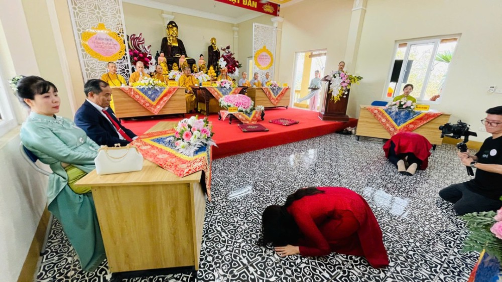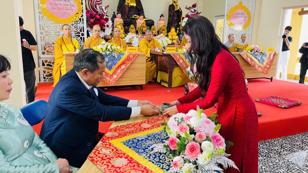 Đại diện hai bên gia đình, bà Nguyễn Thị Phương Thảo đã dâng lời cảm tạ chư tôn đức Tăng Ni đã hoan hỷ chứng minh và ban những lời giáo huấn quý báu. Những lời dạy ấy không chỉ dành riêng cho đôi tân hôn mà còn là bài học sâu sắc cho tất cả những ai hiện diện.