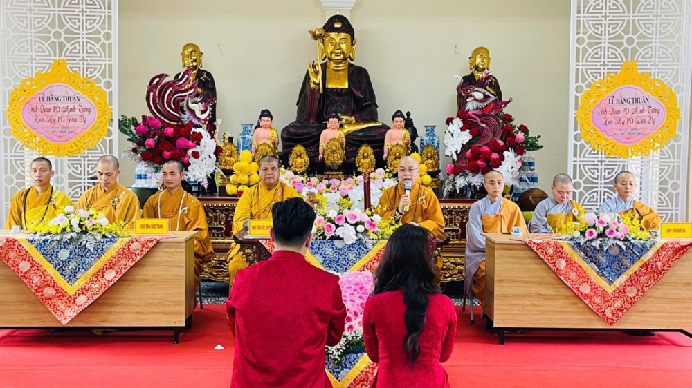Trước khi chính thức bước vào nghi thức Hằng thuận, Thượng tọa Thích Đức Lợi đã ân cần truyền trao cho đôi bạn trẻ năm nguyên tắc đạo đức căn bản để xây dựng hạnh phúc gia đình theo tinh thần Phật dạy. Đó không chỉ là lời khuyên, mà còn là kim chỉ nam giúp đôi vợ chồng trẻ định hướng đời sống hôn nhân bằng chánh niệm, trách nhiệm và lòng từ ái.