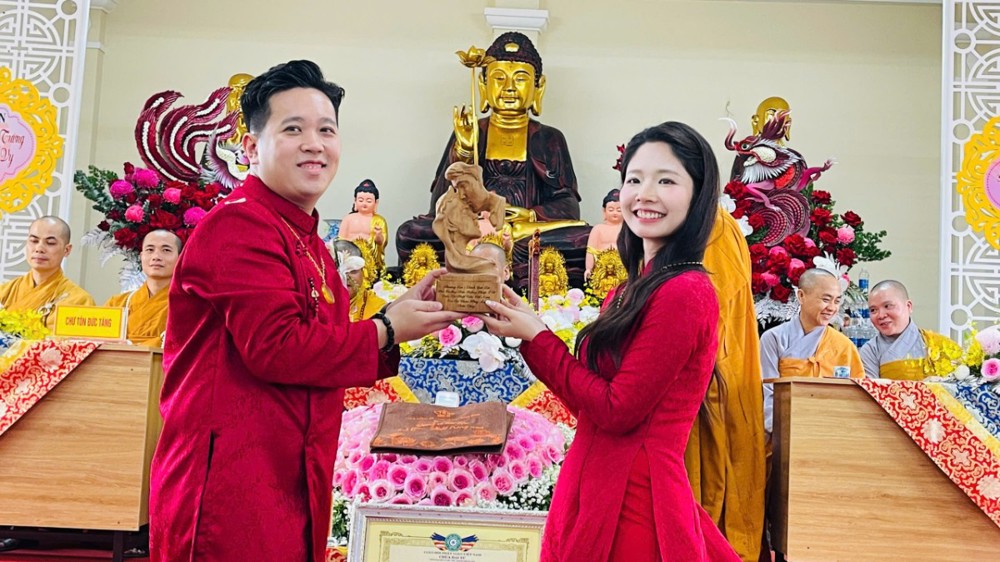 Đặc biệt, trước nghi thức trao nhẫn, Thượng tọa Thích Minh Đăng đã chia sẻ ý nghĩa sâu sắc của “chiếc nhẫn” trong đạo Phật. Không chỉ là tín vật hôn nhân, chiếc nhẫn còn tượng trưng cho sự viên mãn, tròn đầy và bền vững. Hơn thế, “nhẫn” còn là biểu tượng của nhẫn nhục – một trong những phẩm hạnh cốt lõi của người tu học. Sự nhẫn nại, bao dung và thấu hiểu chính là chìa khóa giữ gìn hạnh phúc gia đình.