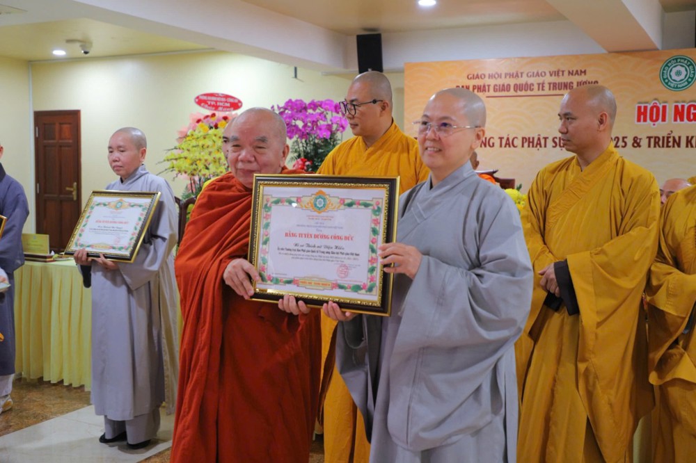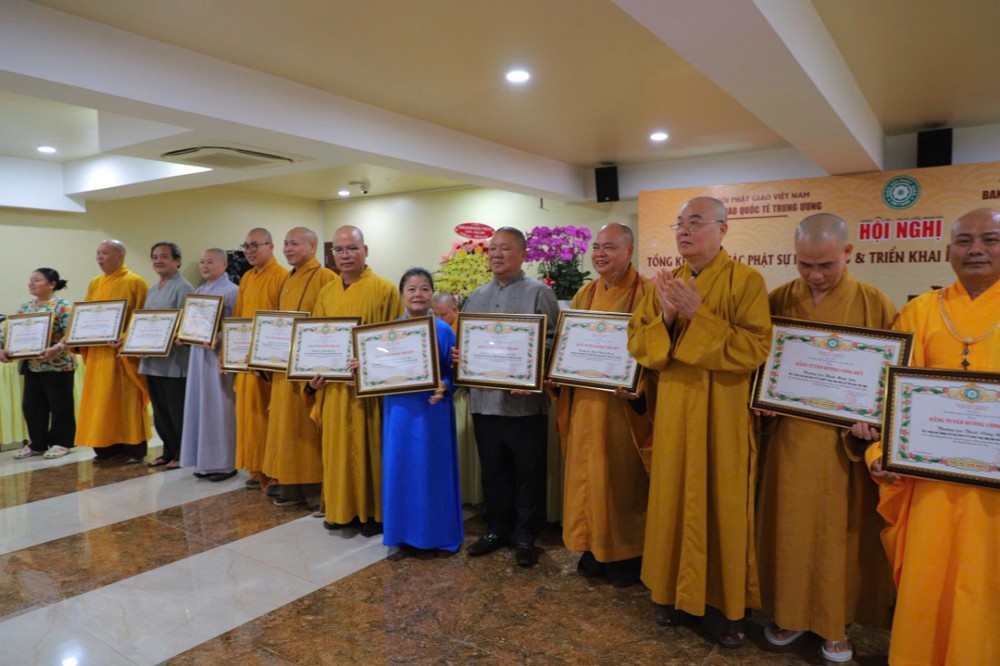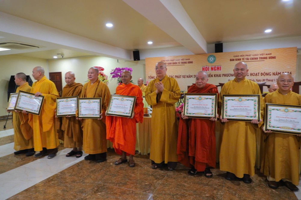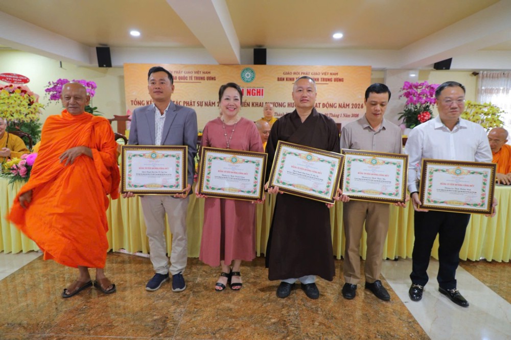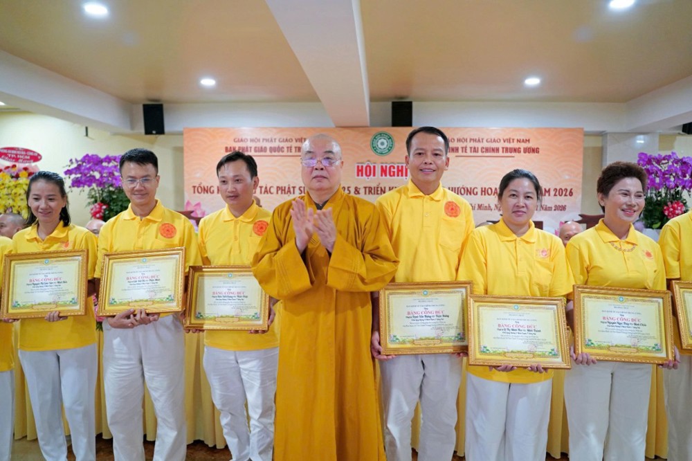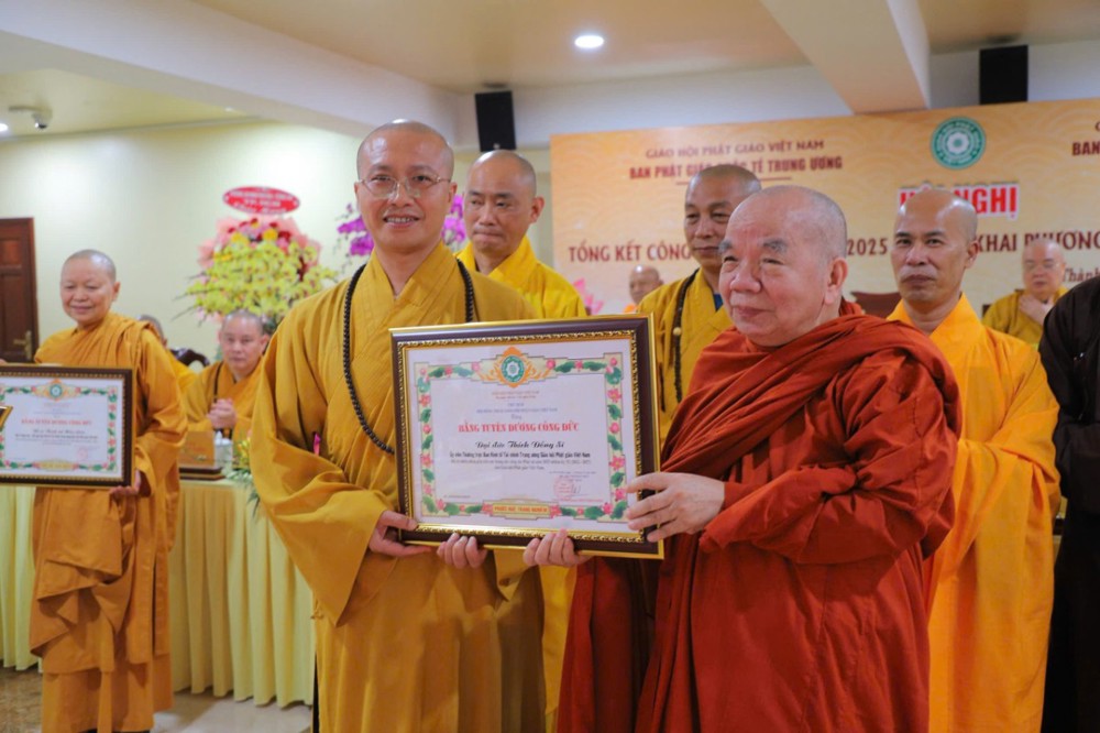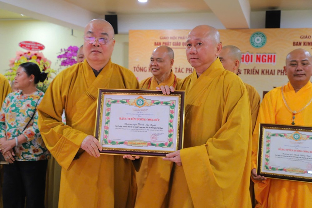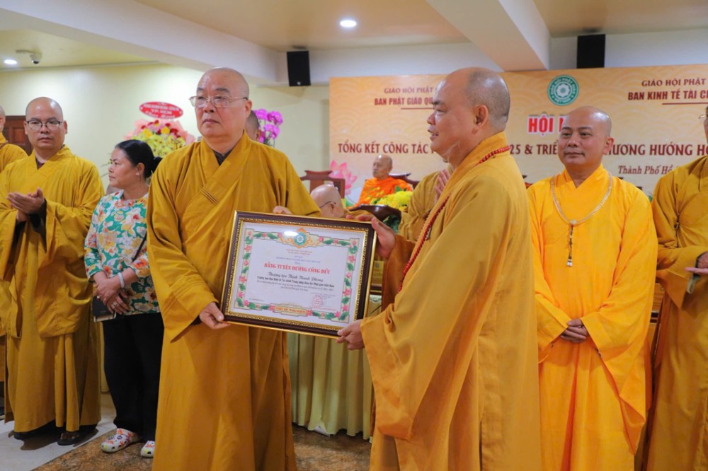 Thượng tọa Thích Thanh Tuấn – Phó Tổng Thư ký Hội đồng Trị sự, Chánh Văn phòng I Trung ương Giáo hội đã công bố Quyết định và điều hành phần trao Bằng tuyên dương công đức của Trung ương Giáo hội. Nhằm ghi nhận và tán thán những nỗ lực, thành tựu đạt được trong năm qua, Hội đồng Trị sự Trung ương GHPGVN đã trao Bằng Tuyên dương Công đức cho tập thể Ban Phật giáo Quốc tế Trung ương và Ban Kinh tế - Tài chính Trung ương, đồng thời vinh danh các cá nhân tiêu biểu có nhiều đóng góp xuất sắc cho sự phát triển bền vững của Giáo hội.
