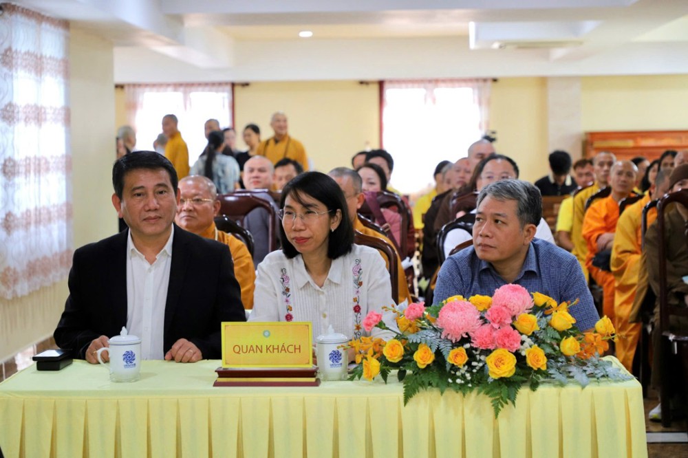 Về phía đại biểu chính quyền tham dự có ông Vũ Huy Long – Phó phòng Phật giáo Sở Dân tộc và Tôn giáo TP.HCM; bà Phạm Yến Bình – Phó Phòng An ninh Nội địa Công an TP.HCM, cùng đại diện lãnh đạo các cơ quan, ban ngành địa phương.