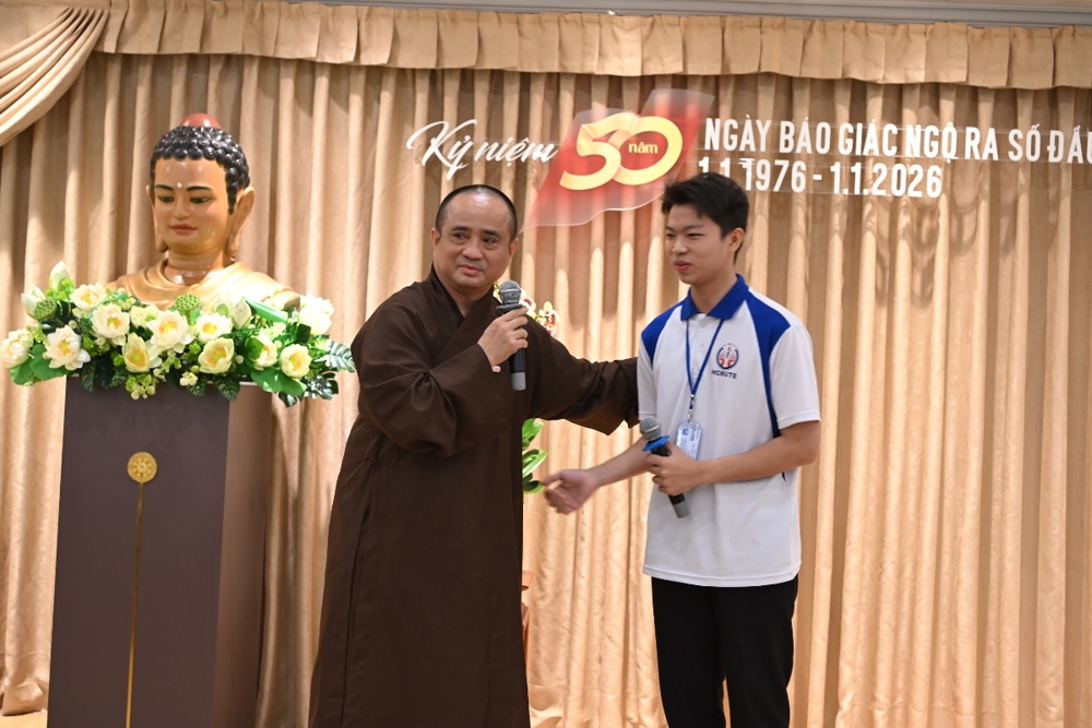 Đại diện nhà trường cũng bày tỏ mối nhân duyên đặc biệt với Báo Giác Ngộ - một ấn phẩm gắn liền với ký ức sinh viên và là nhịp cầu tri thức về cội nguồn, văn hóa. Nhắc lại tấm gương nữ sinh Nhất Chi Mai của trường Đại học Văn khoa (nay là ĐH KHXH&NV) đã tự thiêu vì hòa bình, đây chính là nguồn cảm hứng lớn lao về tinh thần phụng sự và lòng yêu nước cho thế hệ trẻ.