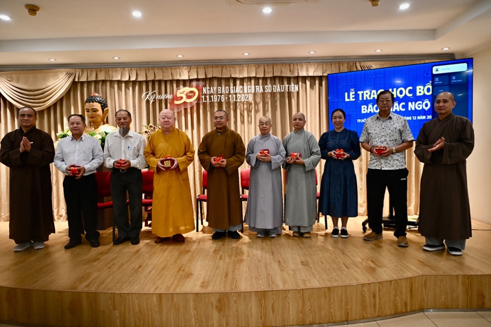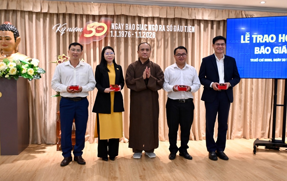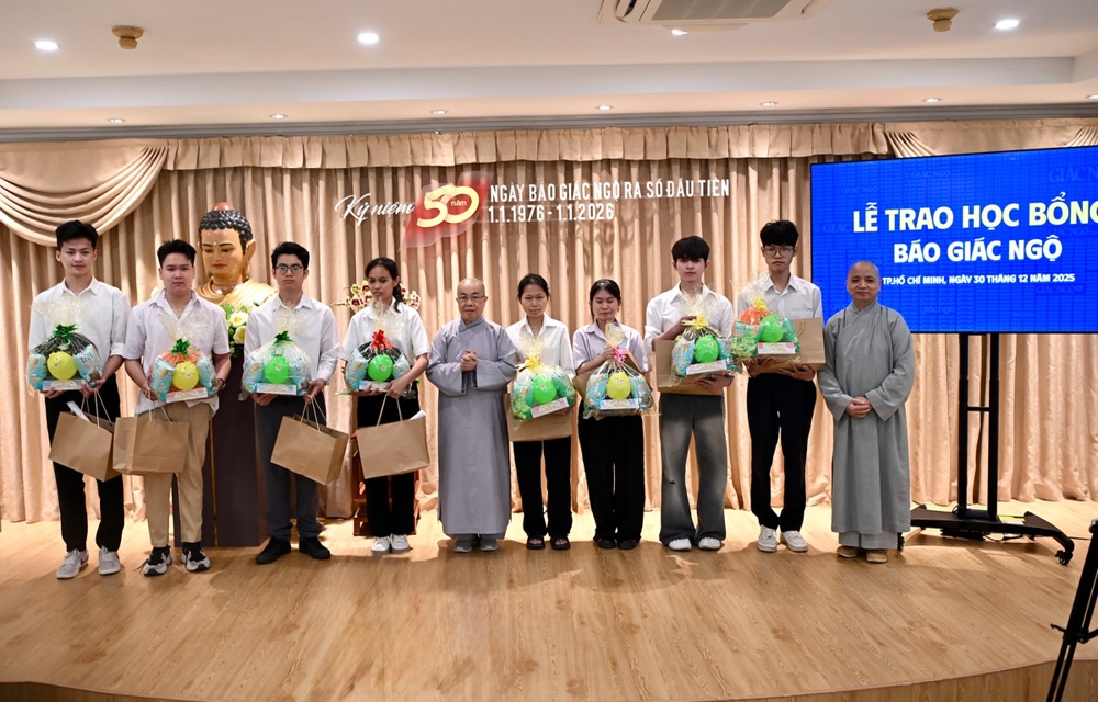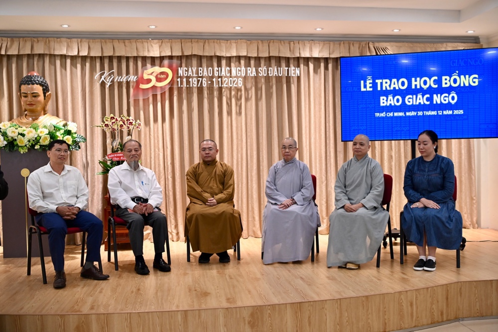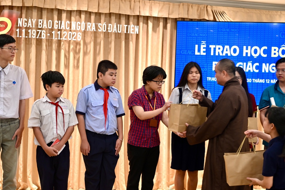 PSO - Nhân kỷ niệm 50 năm ngày Báo Giác Ngộ ra số đầu tiên, sáng ngày 30/12/2025, tại trụ sở Tòa soạn Báo Giác Ngộ (số 85 Nguyễn Đình Chiểu, phường Xuân Hòa, TP.HCM), Ban Biên tập tổ chức lễ trao tặng học bổng đến 50 em sinh viên có thành tích học tập và rèn luyện tốt đến từ 4 trường Đại học tại TP.HCM.