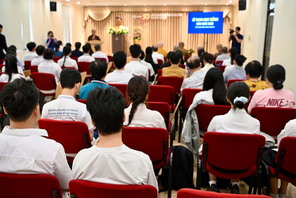 Đại diện Ban Tổ chức bày tỏ sự trân trọng trước nỗ lực của các em sinh viên. Chương trình không chỉ là sự hỗ trợ về vật chất mà còn là nơi hội tụ của những tâm nguyện cao đẹp vì sự nghiệp giáo dục và thế hệ trẻ. Những lời chia sẻ từ chư Tôn đức và các đại biểu đã thắp sáng thêm niềm tin cho 50 em sinh viên được đón nhận học bổng, là sự tiếp nối của yêu thương và trí tuệ. Các đại biểu kỳ vọng các em sinh viên sẽ biến lòng biết ơn thành hành động, nỗ lực học tập để trở thành công dân có ích cho xã hội.