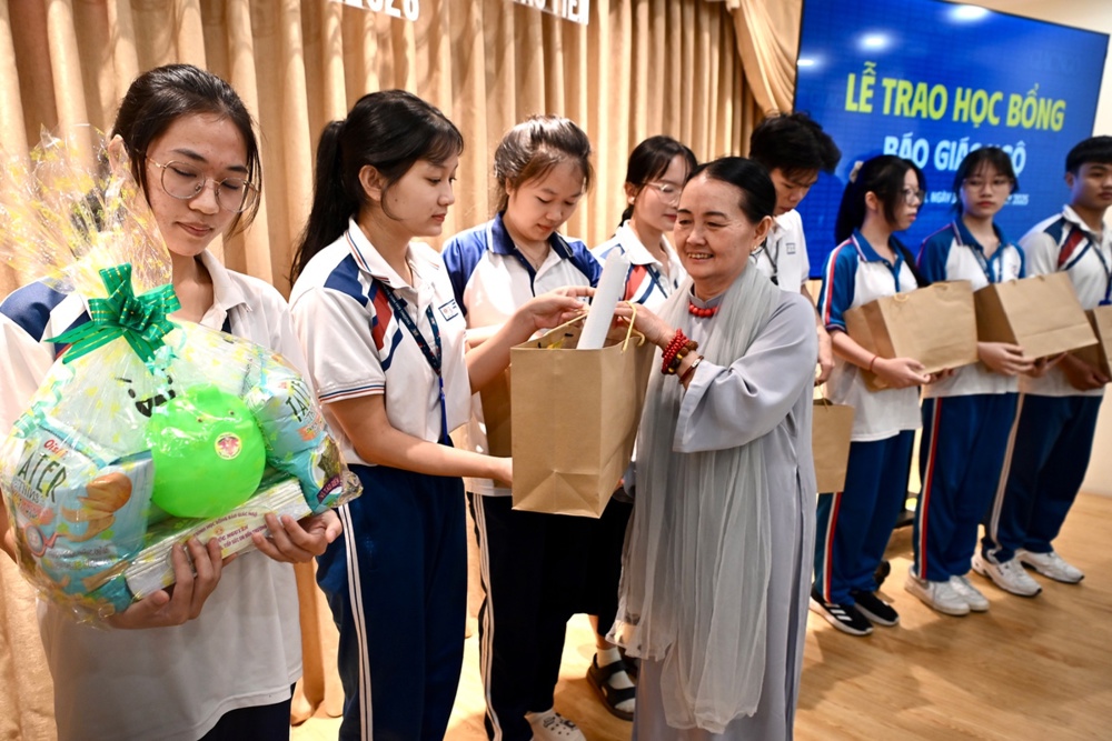 Trong niềm xúc động, Ni trưởng Thích Nữ Như Dung, Phó Phân ban Ni giới TƯ nhấn mạnh, việc các em sinh viên được đón nhận học bổng chính là sự ghi nhận xứng đáng cho những thành tích học tập và đạo đức của các em. Đây không chỉ là món quà, mà là sự đầu tư vào những "hạt giống" tương lai của đất nước, tạo ra lợi lạc cho xã hội, giúp ngôi nhà Phật pháp và đất nước phát triển chính là nguyện ước lớn nhất của những người con Phật.