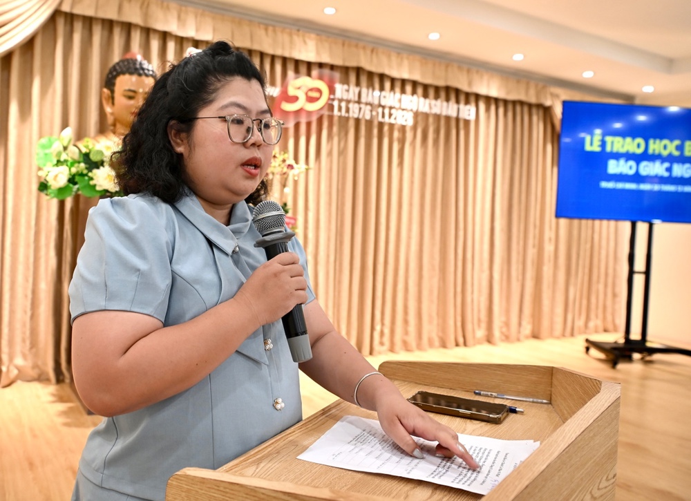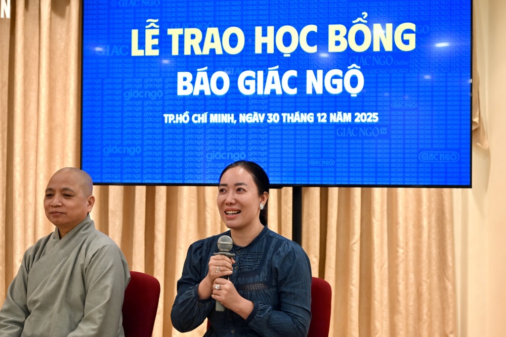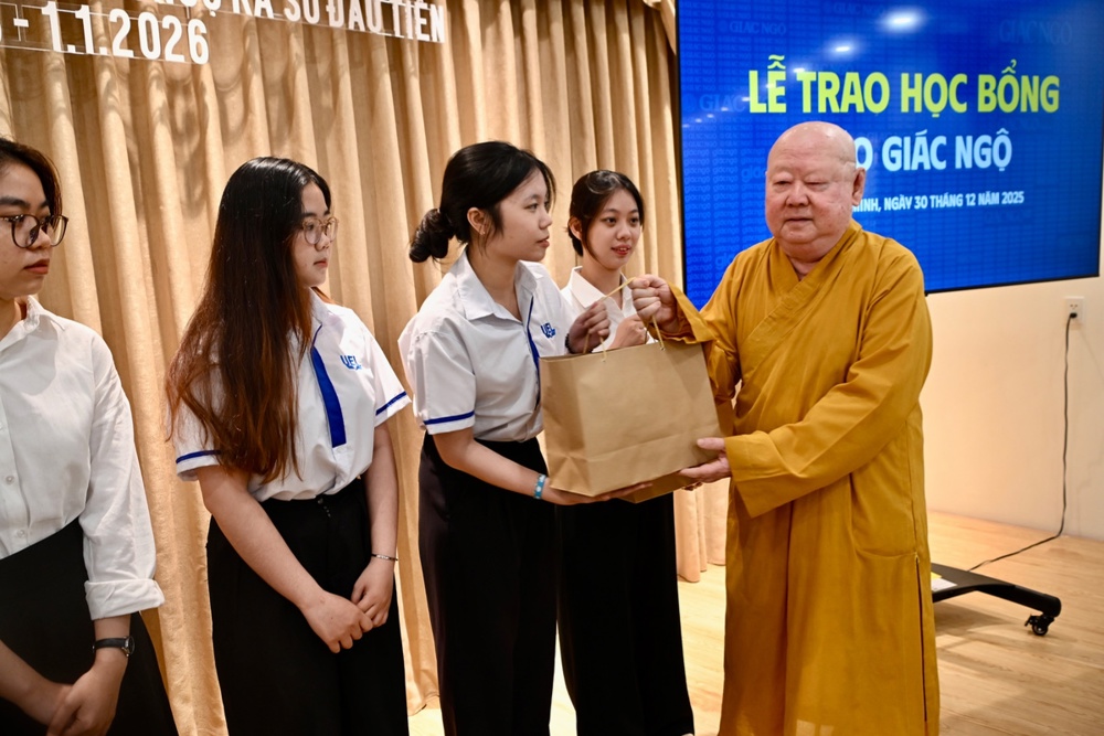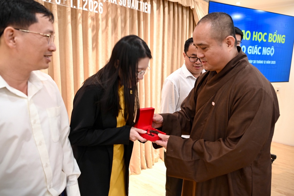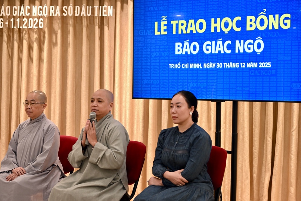 Buổi lễ trao học bổng đã thành tựu viên mãn, Báo Giác Ngộ đóng vai trò là nhịp cầu kết nối giữa những tấm lòng vàng và những trí tuệ trẻ. Học bổng là giá trị vật chất nhưng cũng là điểm tựa tinh thần để các em sống tốt hơn, vững vàng hơn. Mỗi bạn sinh viên chính là một "viên gạch" xây dựng đất nước giàu mạnh. Các em cần có trách nhiệm gìn giữ, nuôi dưỡng "hạt giống thiện lành" mà chư Tôn đức và các nhà hảo tâm đã gửi gắm ngày hôm nay.