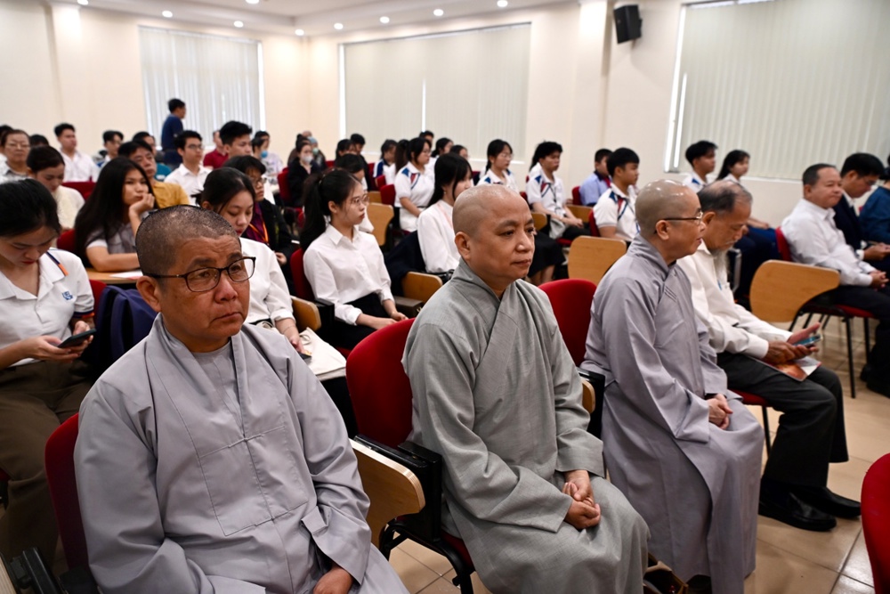 Tham dự buổi lễ có Thượng tọa Thích Tâm Hải, Ủy viên Hội đồng Trị sự, Trưởng ban Thông tin - Truyền thông Phật giáo TP.HCM, Tổng Biên tập Báo Giác Ngộ; Đại đức Thích Pháp Đăng, Trị sự Tòa soạn Báo Giác Ngộ; Hòa thượng Thích Duy Trấn, Phó ban Thường trực Ban Từ thiện Xã hội Báo Giác Ngộ; Đại đức Thích Tâm Nhơn, Ủy viên ban Thông tin truyền thông GHPGVN TP.HCM, trụ trì chùa Pháp Minh; Ni trưởng Thích nữ Như Dung, Phó phân ban Ni giới Trung ương, Quản tự chùa Huệ Lâm, TP.HCM; Ni sư Thích Nữ Thuần Chơn, Ủy viên Thường trực Phân ban Ni giới Trung ương, Ủy viên Thường trực Phân ban Ni giới TP.HCM; cư sĩ Diệu Nhân - Nguyễn Thị Xuân Loan, Ủy viên HĐTS, Phó Phân ban Cư sĩ Phật tử TƯ, cùng đại diện Ban giám hiệu các trường đại học, các nhà hảo tâm, các em sinh viên đến từ trường Đại học KHXH&NV TP.HCM, Đại học Sư phạm TP.HCM, Đại học Bách khoa TP.HCM, Đại học Kinh tế Luật TP.HCM.
