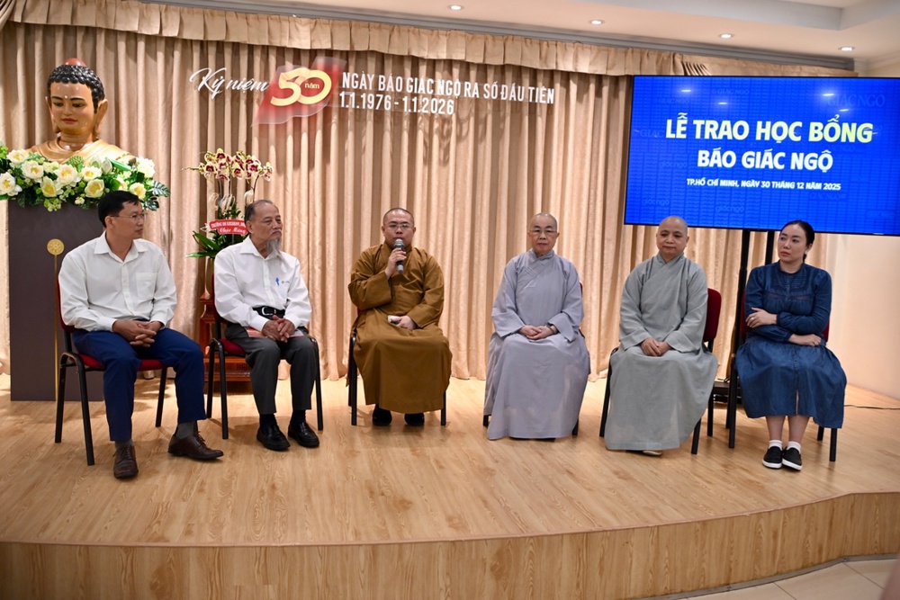Chia sẻ tại buổi lễ, Thượng tọa Thích Tâm Hải, Tổng Biên tập Báo Giác Ngộ đã nhấn mạnh, trong suốt 50 năm hoạt động liên tục, với vai trò là tiếng nói của Phật giáo yêu nước và sau đó là cơ quan ngôn luận của Giáo hội Phật giáo Việt Nam TP.HCM, Báo Giác Ngộ đã đóng vai trò quan trọng trong việc chuyển tải thông tin một cách chính xác, kịp thời về các hoạt động Phật sự của Giáo hội, của Phật giáo đến với Tăng Ni, Phật tử và bạn đọc gần xa.