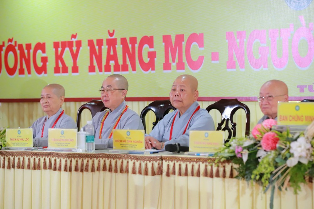 Ban đạo từ tại buổi lễ, Ni trưởng Thích Nữ Như Như – Phó Thường trực PBNG TƯ nhấn mạnh tinh thần hoằng pháp theo gương Ngài Phú Lâu Na, đồng thời khuyến tấn chư Ni giữ tâm khiêm cung và sự chuẩn mực trong vai trò dẫn chương trình. Ni trưởng nhắc rằng MC Phật giáo không chỉ truyền tải thông tin mà còn chuyển hóa tinh thần đạo vị thông qua phong thái và từng lời nói.