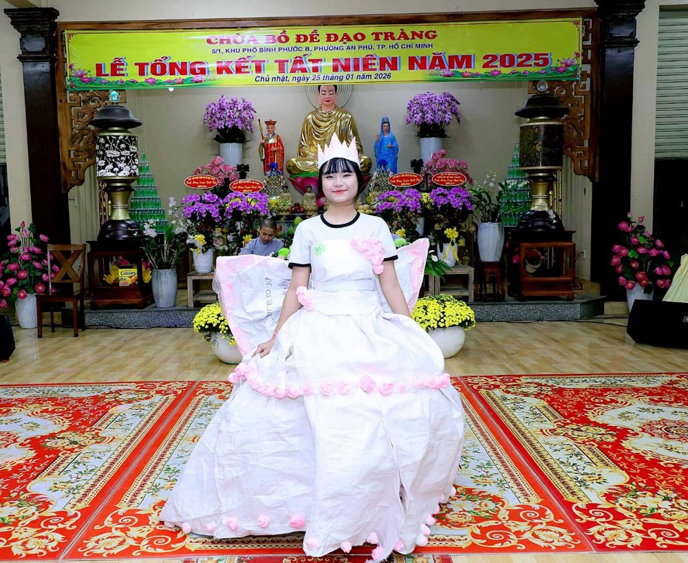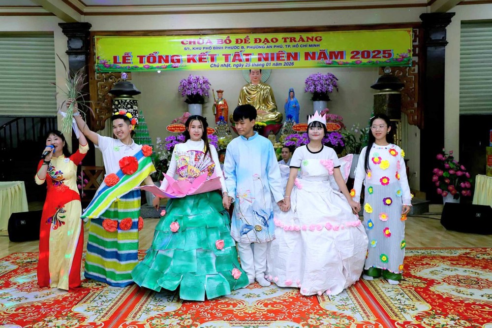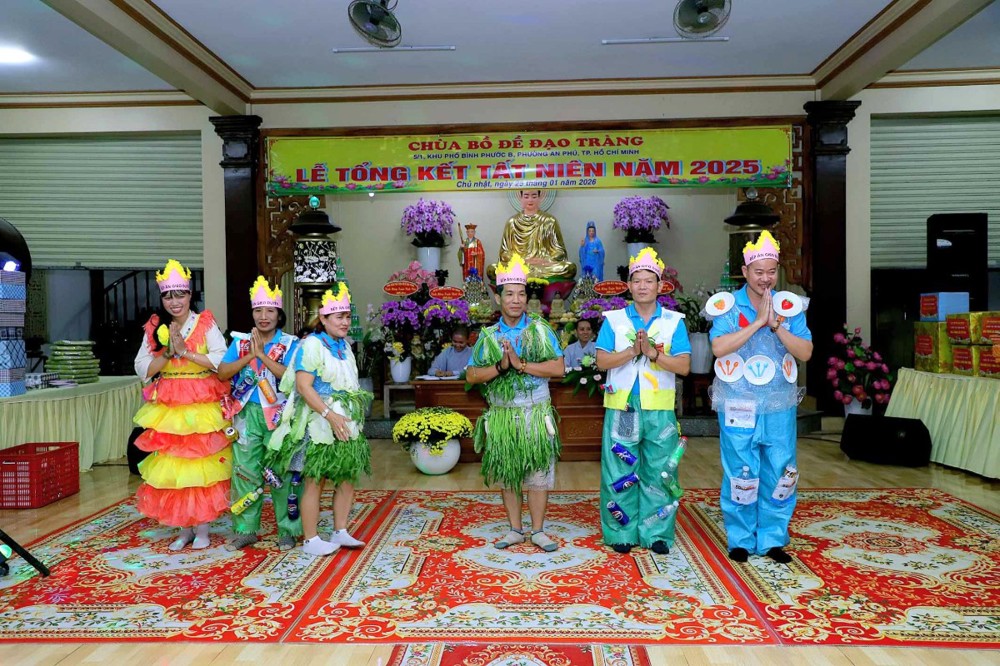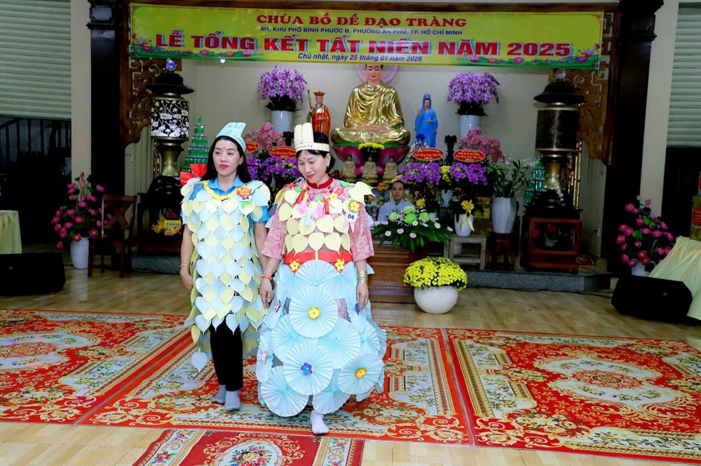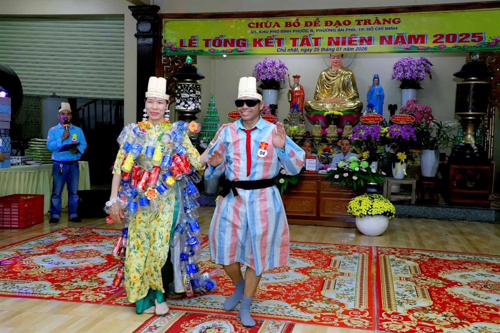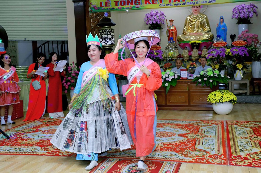 Bên cạnh phần lễ trang nghiêm, chương trình tất niên còn mang đậm không khí sinh hoạt cộng đồng vui tươi và gắn kết. Hội thi nấu ăn dành cho các chú tiểu đã mang đến những khoảnh khắc hồn nhiên, sinh động, góp phần giáo dục kỹ năng sống trong tinh thần tu học. Cuộc thi văn nghệ, kết hợp thiết kế thời trang giấy mang thông điệp ý nghĩa về ý thức bảo vệ môi trường, sống xanh và tiết giảm tiêu thụ đã được trình diễn trong không khí vui tươi, hoan hỷ. Hoạt động này không chỉ góp phần nâng cao nhận thức cộng đồng về việc tái chế và sử dụng tài nguyên một cách có trách nhiệm, mà còn thể hiện rõ tinh thần tu học gắn liền với đời sống, đem giáo lý từ bi và chánh niệm ứng dụng vào từng hành động cụ thể.