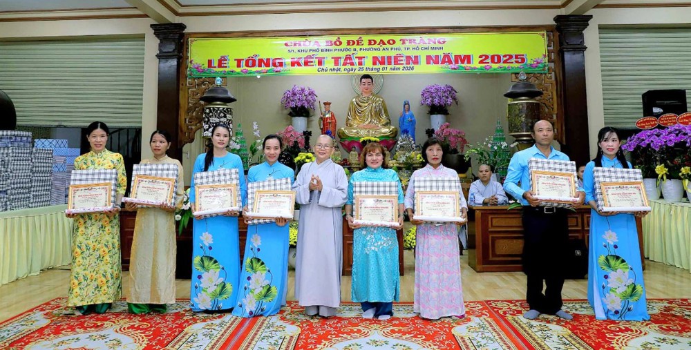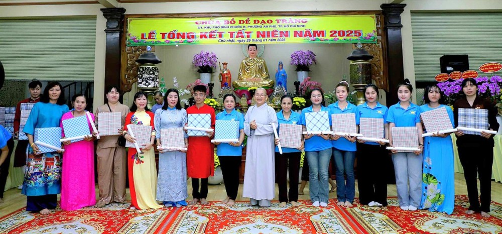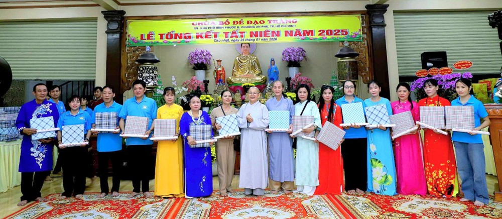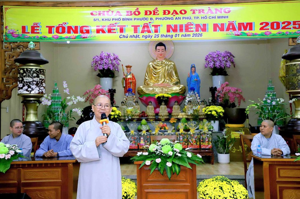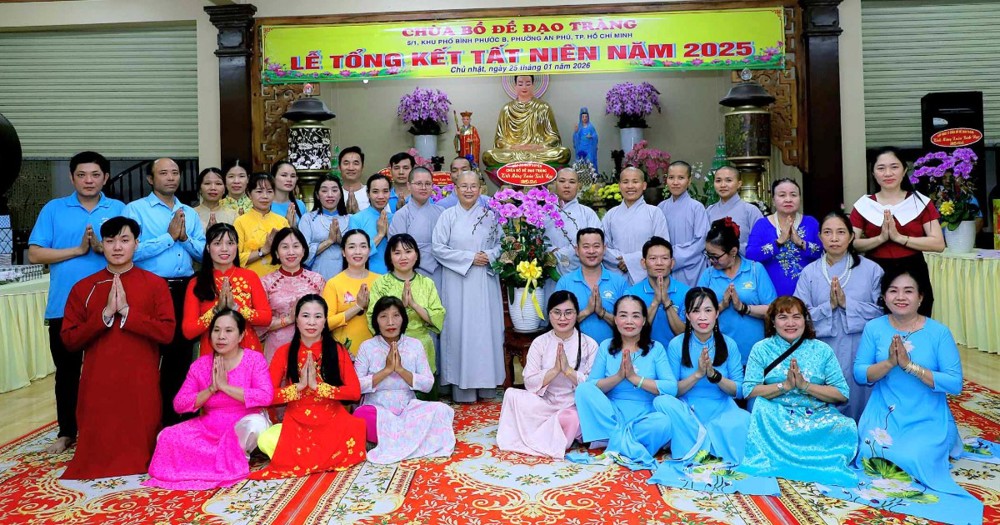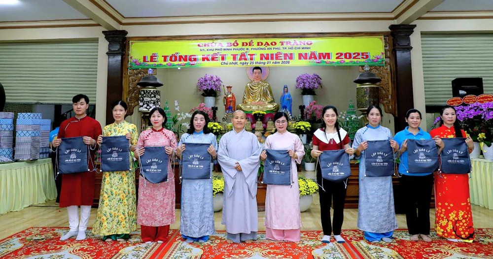 PSO - Chiều ngày 25/01/2026 (nhằm ngày 7/12 năm Ất Tỵ), trong không khí trang nghiêm và ấm áp những ngày cuối năm, Chùa Bồ Đề Đạo Tràng (KP. Bình Phước B, P.An Phú, TP. Hồ Chí Minh), đã long trọng tổ chức Lễ tổng kết tất niên hoạt động Phật sự năm 2025 và triển khai kế hoạch phương hướng hoạt động năm 2026.