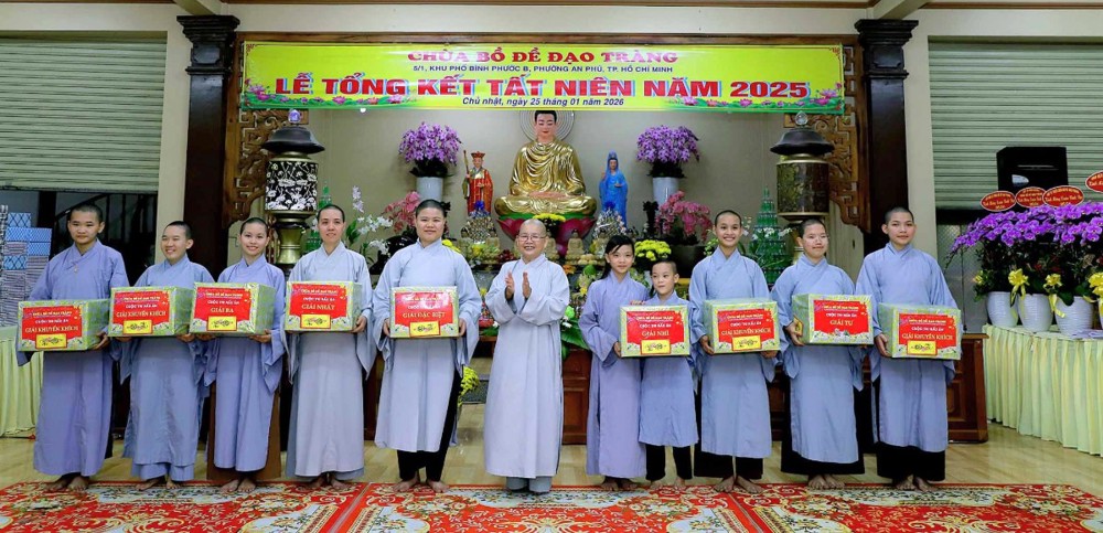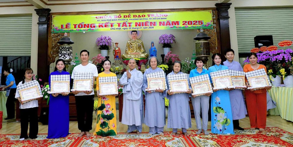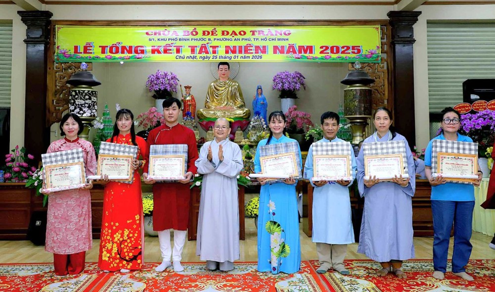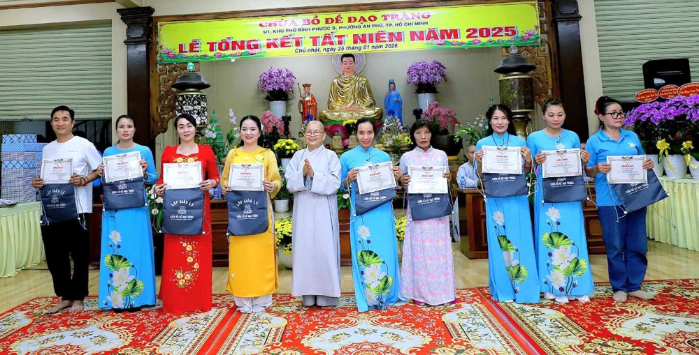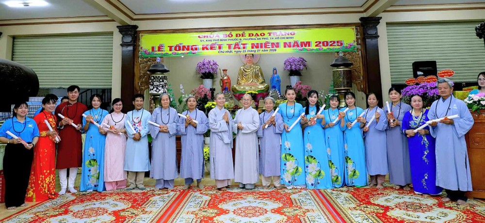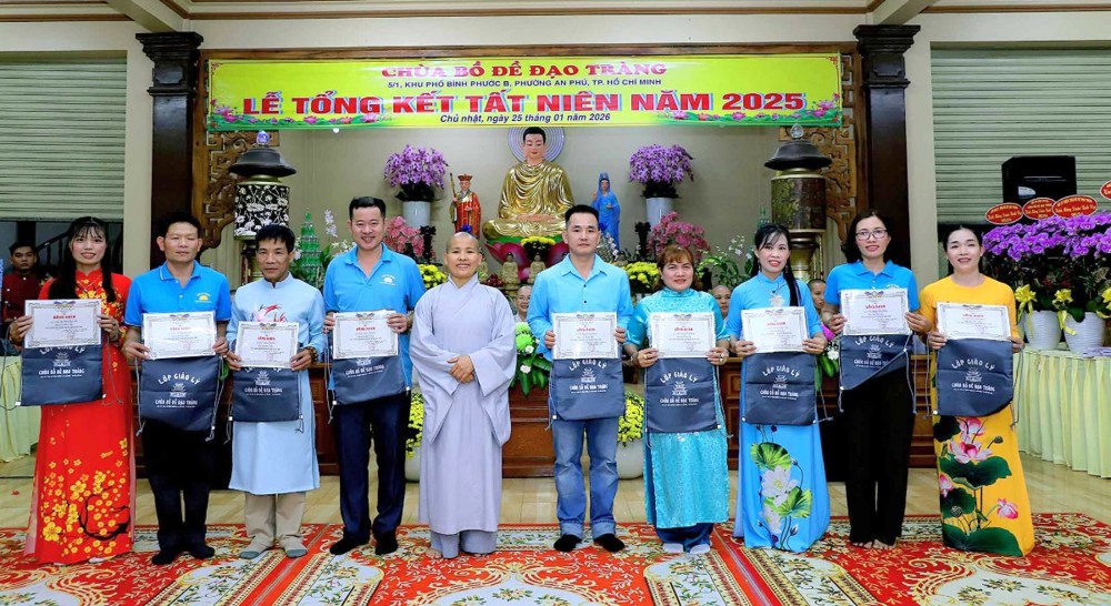 PSO - Chiều ngày 25/01/2026 (nhằm ngày 7/12 năm Ất Tỵ), trong không khí trang nghiêm và ấm áp những ngày cuối năm, Chùa Bồ Đề Đạo Tràng (KP. Bình Phước B, P.An Phú, TP. Hồ Chí Minh), đã long trọng tổ chức Lễ tổng kết tất niên hoạt động Phật sự năm 2025 và triển khai kế hoạch phương hướng hoạt động năm 2026.
