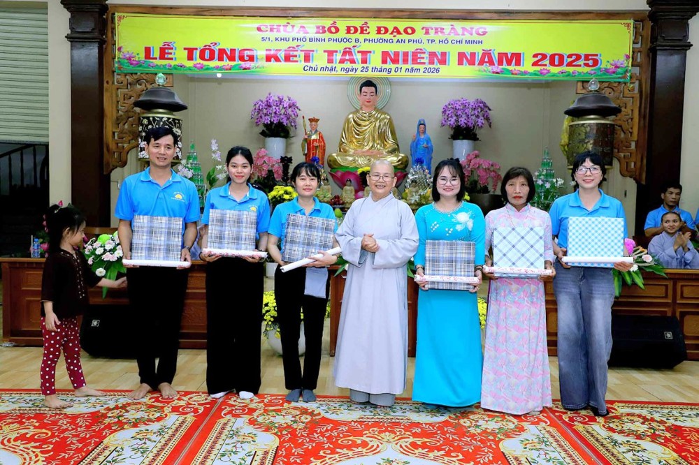 Buổi lễ do Ni sư TN. Từ Thảo - Ủy viên HĐTS, Phó trưởng Phân ban kiêm Trưởng ban Pháp chế Phân ban Ni giới T.Ư, Phó ban Trị sự kiêm Phó ban Thường trực Ban Kinh tế Tài chánh GHPGVN TP.HCM, Trụ trì Chùa Bồ Đề Đạo Tràng, đồng thời là Hội trưởng Hội Từ thiện Chùa Bồ Đề Đạo Tràng – chủ trì và chứng minh; cùng chư Ni Bổn tự, toàn thể hội viên Hội Từ thiện đồng trở về tham dự, chung niềm hoan hỷ trong ngày tổng kết cuối năm.