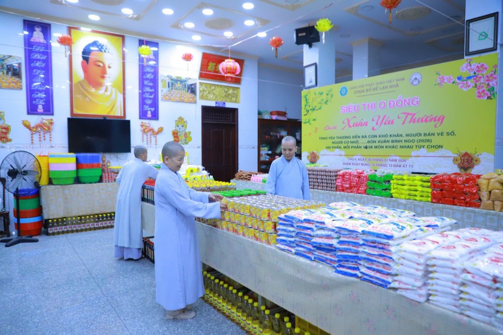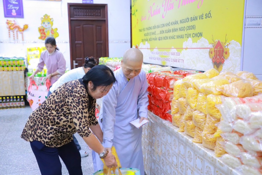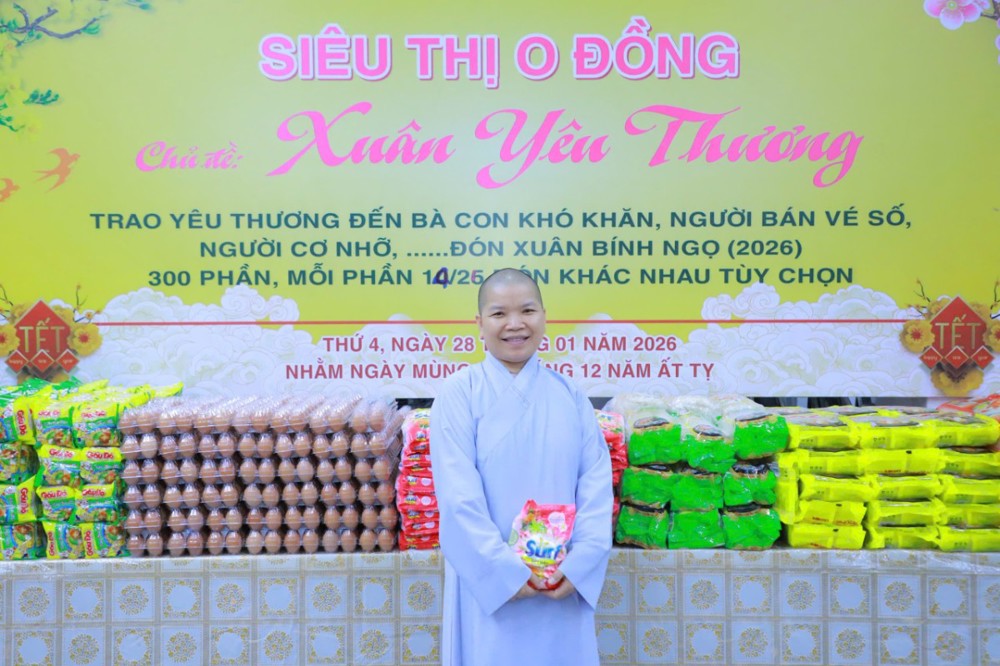 PSO – Chiều ngày 28/01/2026, tại chùa Bồ Đề Lan Nhã (TP.HCM), Ni trưởng Thích nữ Như Hiền – Ủy viên Thường trực Phân ban Ni giới Trung ương, Ủy viên Ban Trị sự GHPGVN TP.HCM, Phó Trưởng Phân ban Ni giới TP.HCM – đã tổ chức chương trình “Phiên chợ 0 đồng” với chủ đề “Xuân Yêu Thương”, nhằm sẻ chia và động viên bà con có hoàn cảnh khó khăn trên địa bàn nhân dịp Tết cổ truyền của dân tộc.