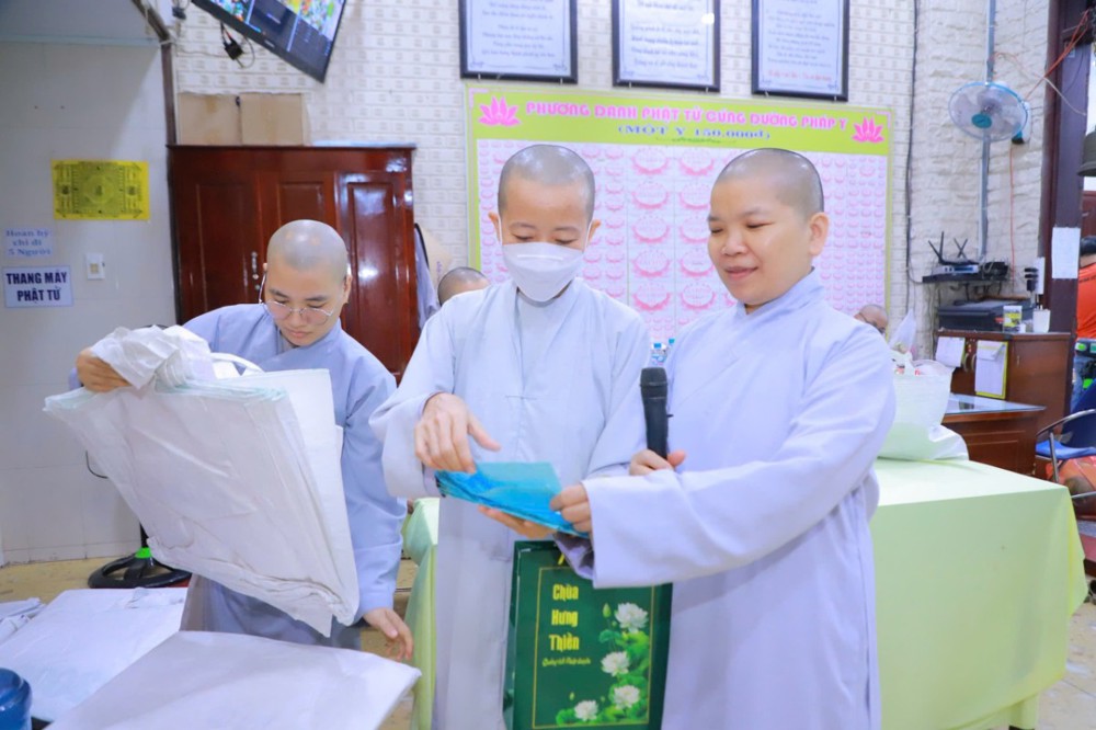 Phát biểu tại buổi trao quà, Ni trưởng Thích Nữ Như Hiền chia sẻ rằng năm nay là một năm nhiều biến động, tình hình kinh tế còn gặp không ít khó khăn, đời sống của nhiều bà con vẫn còn nhiều chật vật. Mặc dù thời gian qua chùa đã tổ chức hai chuyến từ thiện tại Malaysia, cũng như nhiều chuyến cứu trợ, hỗ trợ đồng bào miền Trung, song với tinh thần từ bi của đạo Phật, tinh thần “lá lành đùm lá rách” và hạnh nguyện phụng sự chúng sinh, chùa vẫn cố gắng duy trì chương trình này với mong muốn bà con trên địa bàn có được một cái Tết ấm áp, đủ đầy hơn cả về vật chất lẫn tinh thần.