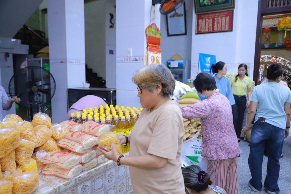 Trong không khí hoan hỷ, ấm áp nghĩa tình, bà con đến tham dự chương trình được tự tay lựa chọn các mặt hàng thiết yếu phù hợp với nhu cầu của gia đình. Phiên chợ có 14 trên tổng số 26 mặt hàng được bày bán tại các gian hàng, đúng với tinh thần nhân văn của “phiên chợ 0 đồng” – nơi không chỉ trao đi vật phẩm, mà còn trao gửi yêu thương, lan tỏa tình người trong những ngày giáp Tết.