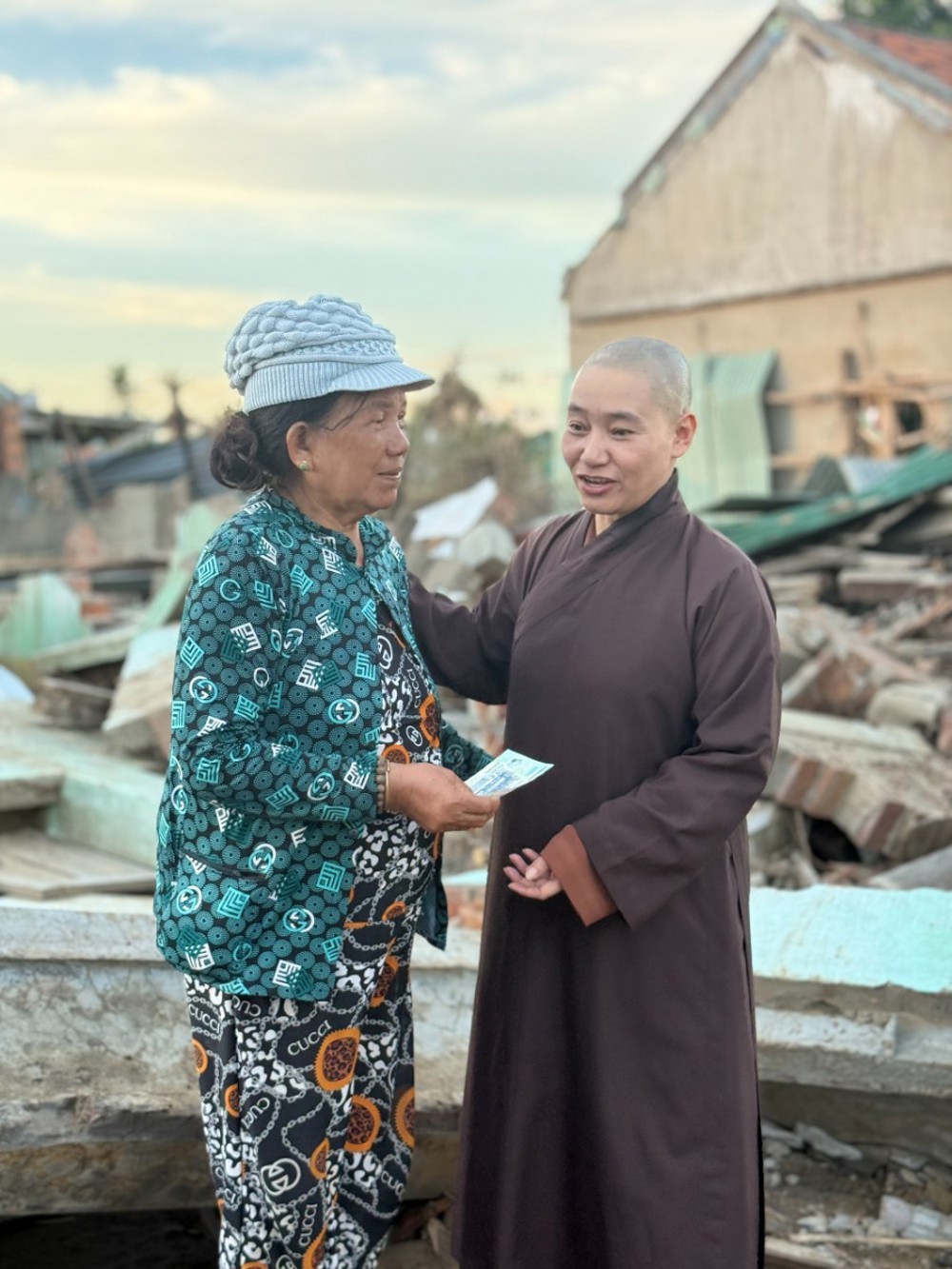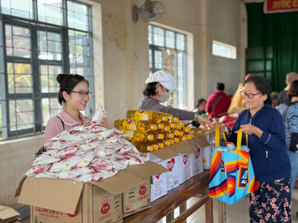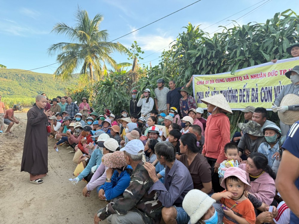 PSO- 01/12/2025, tại Đăk Lăk, Ni sư Thích Nữ Nguyên Chủng – Trụ trì chùa Di Đà (39 Phạm Thị Phạn, xã Nhuận Đức, TP.HCM) – phối hợp với UBMTTQVN xã Nhuận Đức, các nhà hảo tâm và Phật tử đã tổ chức chuyến cứu trợ, trao 900 phần quà trị giá 900 triệu đồng cho đồng bào hai xã Hòa Xuân và Sơn Hòa, thuộc khu vực Phú Yên cũ.